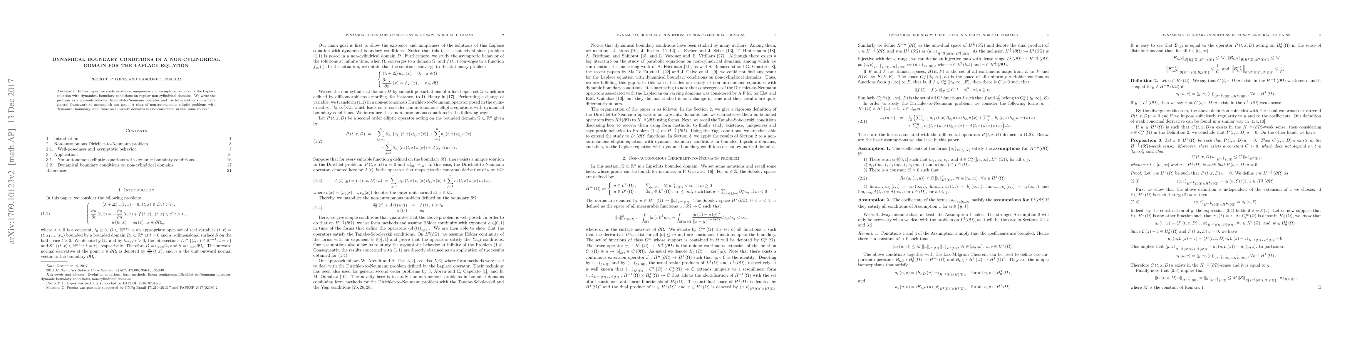 This paper investigates the existence, uniqueness, and asymptotic behavior of the Laplace equation with dynamical boundary conditions in regular non-cylindrical domains, employing form methods and non-autonomous Dirichlet-to-Neumann operators. It also explores a class of non-autonomous elliptic problems within this framework.