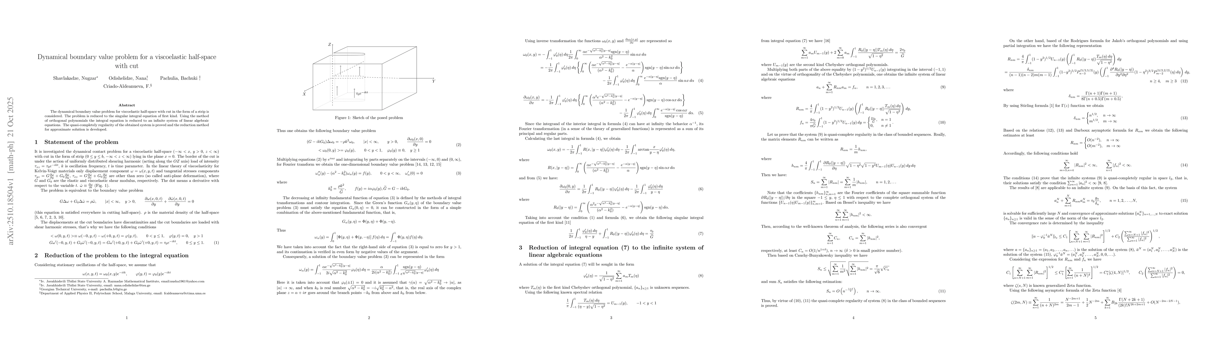 The research employs a combination of integral transforms, contour integration, and orthogonal polynomials to reduce the dynamical boundary value problem to a singular integral equation of the first kind. The solution is further approximated by converting the integral equation into an infinite system of linear algebraic equations using Chebyshev polynomials.