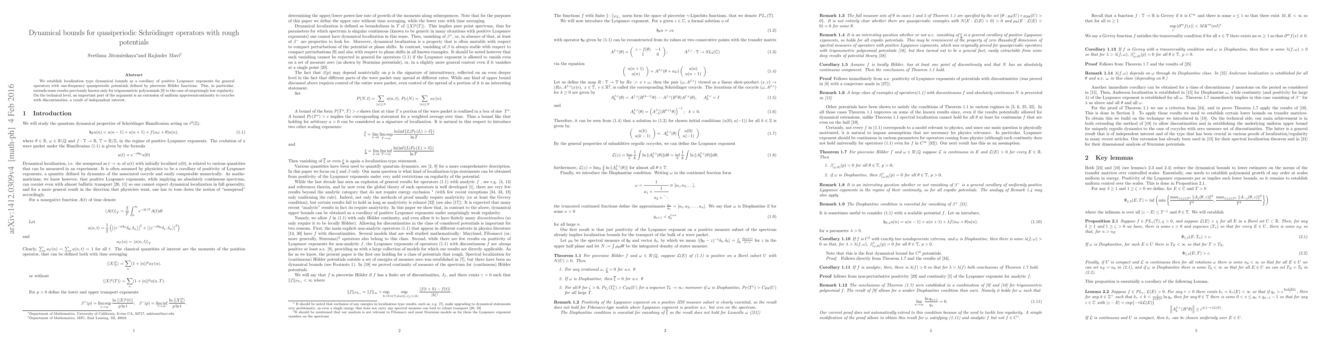 Researchers establish dynamical bounds for a type of quantum system with quasiperiodic potentials, implying that the system will eventually localize in certain areas, even with random or unpredictable forces.