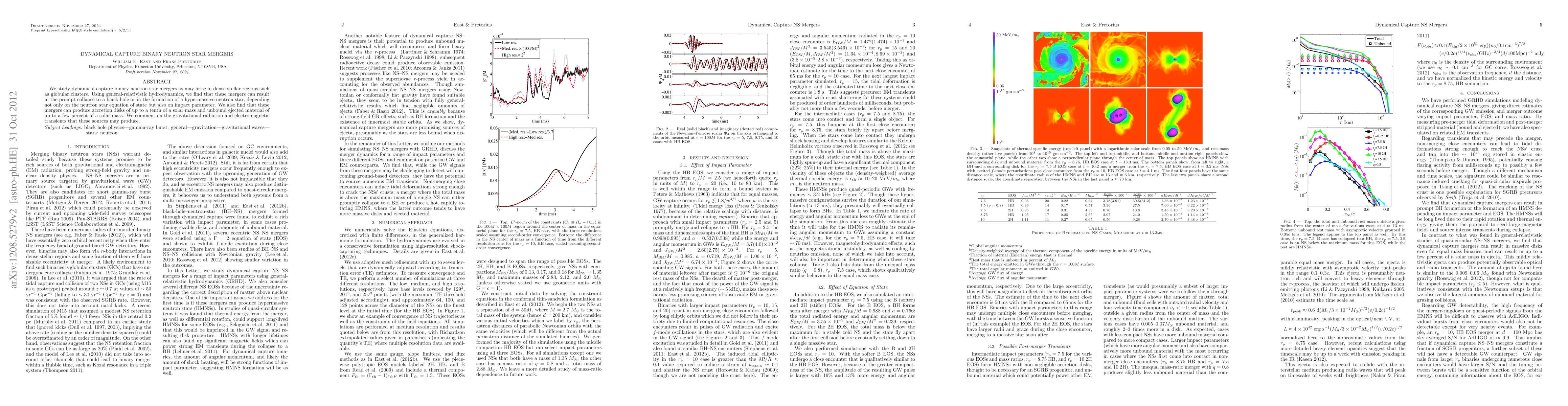 This paper investigates dynamical capture binary neutron star mergers in dense stellar environments, revealing outcomes like black hole formation or hypermassive neutron star creation, influenced by the neutron star equation of state and impact parameter. It also highlights the potential for significant accretion disks and ejected material.