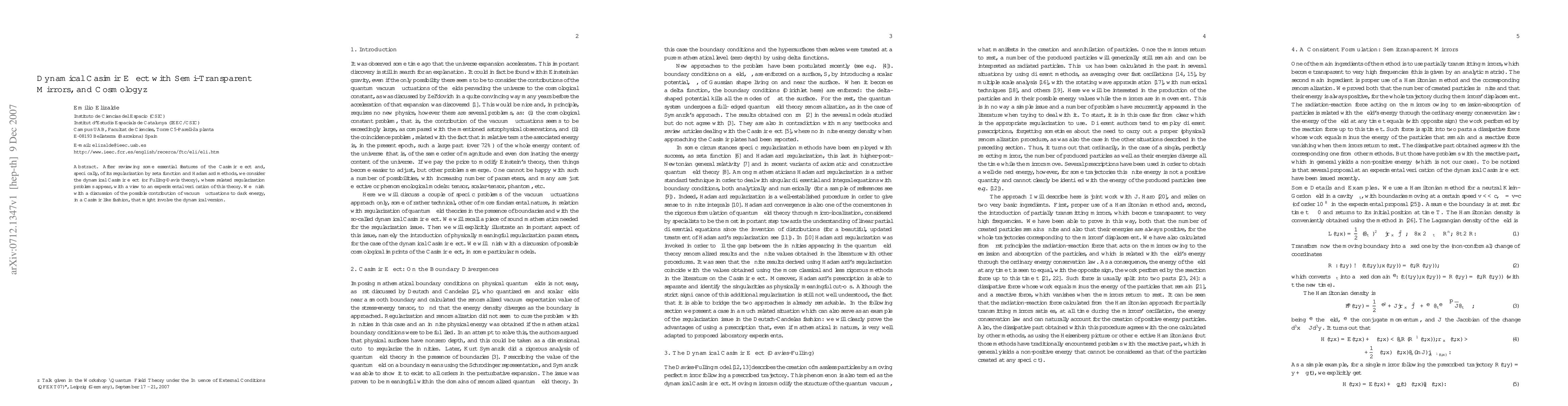This paper examines the dynamical Casimir effect (Fulling-Davis theory) and its regularization methods, aiming for experimental verification. It concludes by discussing how vacuum fluctuations, potentially via a dynamical Casimir-like mechanism, may contribute to dark energy.