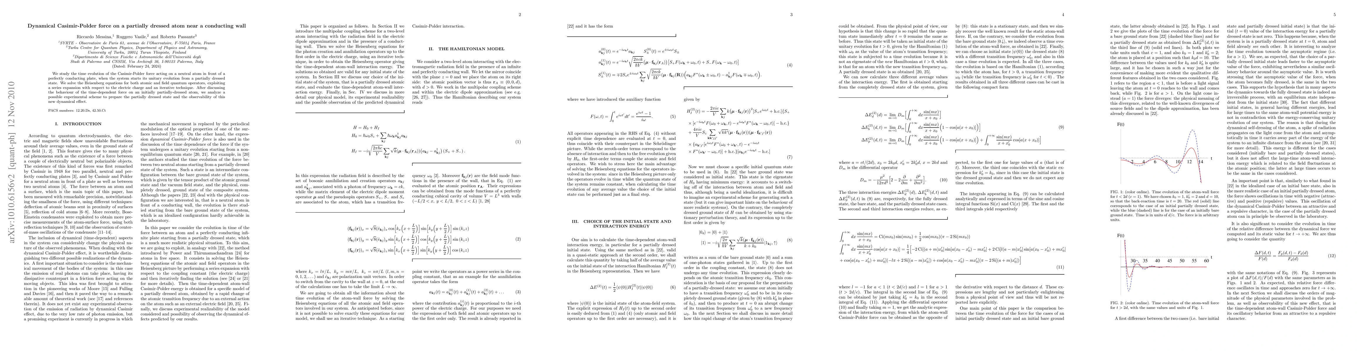 This paper investigates the dynamical Casimir-Polder force on a neutral atom near a conducting wall starting from a partially dressed state. It employs Heisenberg equations and iterative techniques to analyze the time-dependent force, and discusses an experimental setup for observing this novel effect.