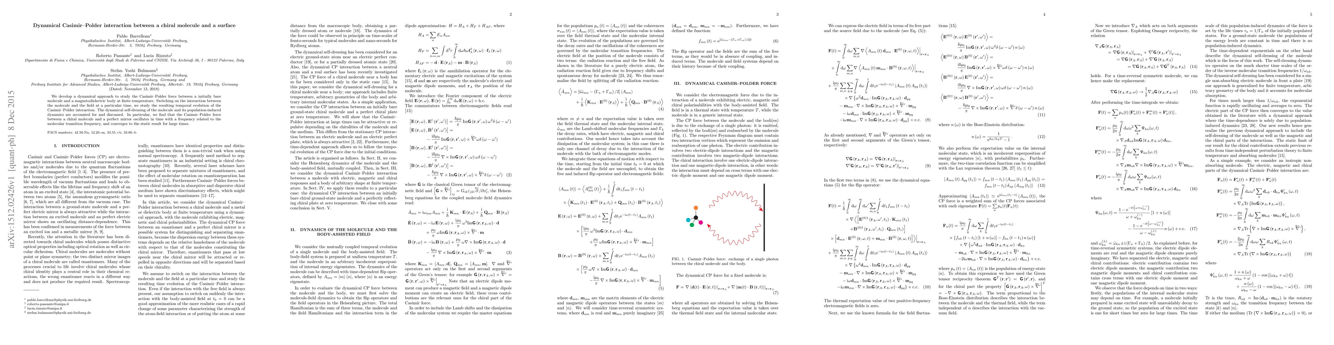 This paper explores the dynamical Casimir-Polder force between a chiral molecule and a magnetodielectric surface at finite temperature, revealing temporal oscillations in the interaction due to the molecule's self-dressing and population dynamics, which eventually converge to the static result over time.