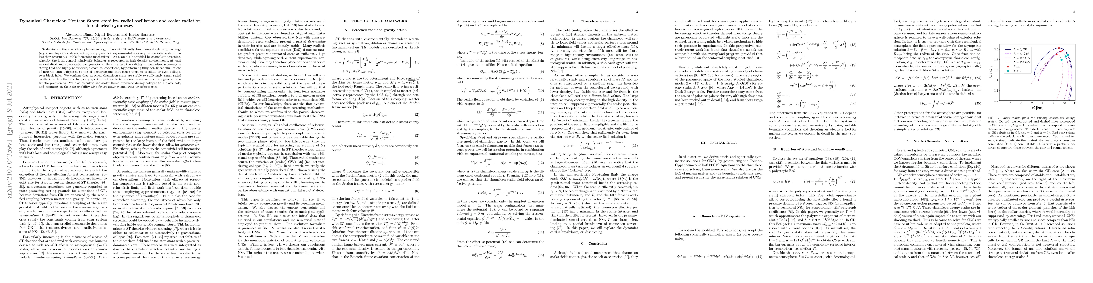 This paper investigates the dynamical behavior of chameleon neutron stars under strong-field conditions, confirming their stability against small radial oscillations while noting deviations in their frequency spectrum from general relativity. It also explores the scalar radiation produced during collapse to a black hole, assessing its potential detectability by future gravitational-wave observatories.