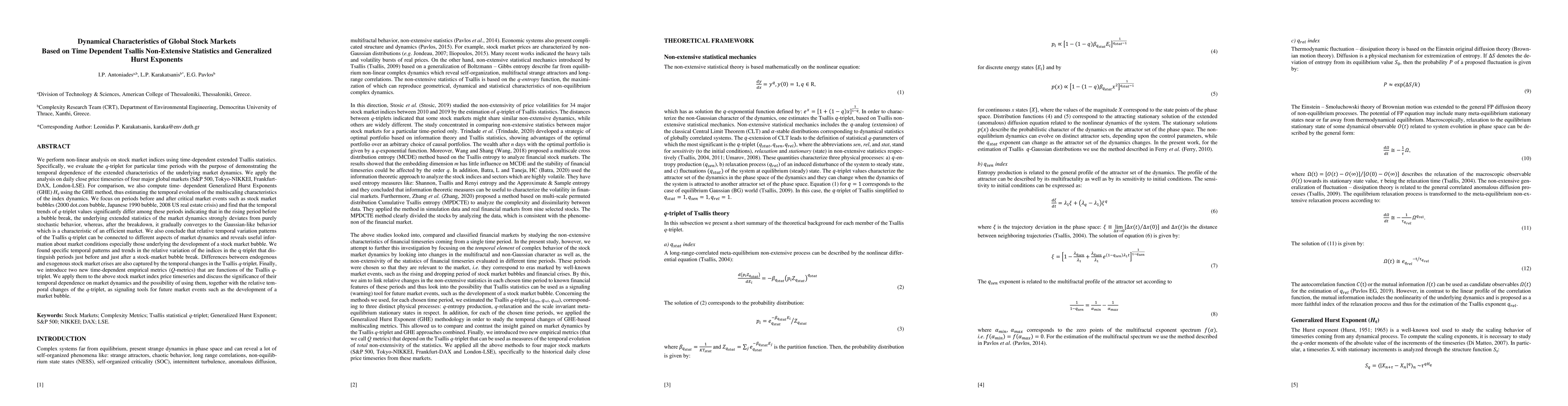 This paper analyzes global stock market dynamics using time-dependent Tsallis non-extensive statistics and Generalized Hurst Exponents to identify patterns before and after market bubbles.