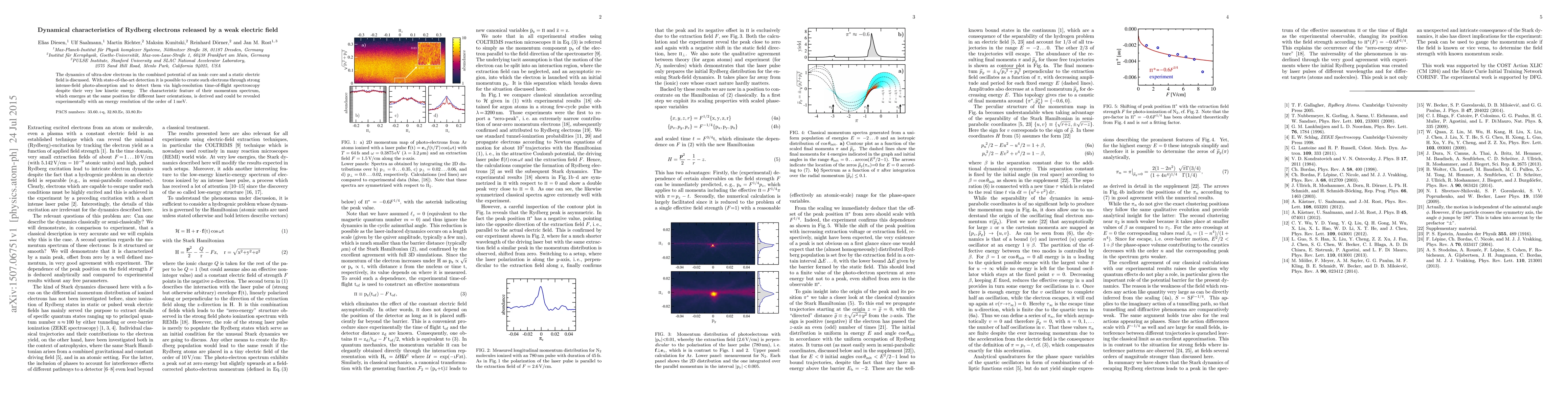 The dynamics of ultra-slow electrons in the combined potential of an ionic core and a static electric field is discussed. With state-of-the-art detection it is possible to create such electrons through strong intense-field photo-absorption and to detect them via high-resolution time-of-flight spectroscopy despite their very low kinetic energy. The characteristic feature of their momentum spectrum, which emerges at the same position for different laser orientations, is derived and could be revealed experimentally with an energy resolution of the order of 1meV.