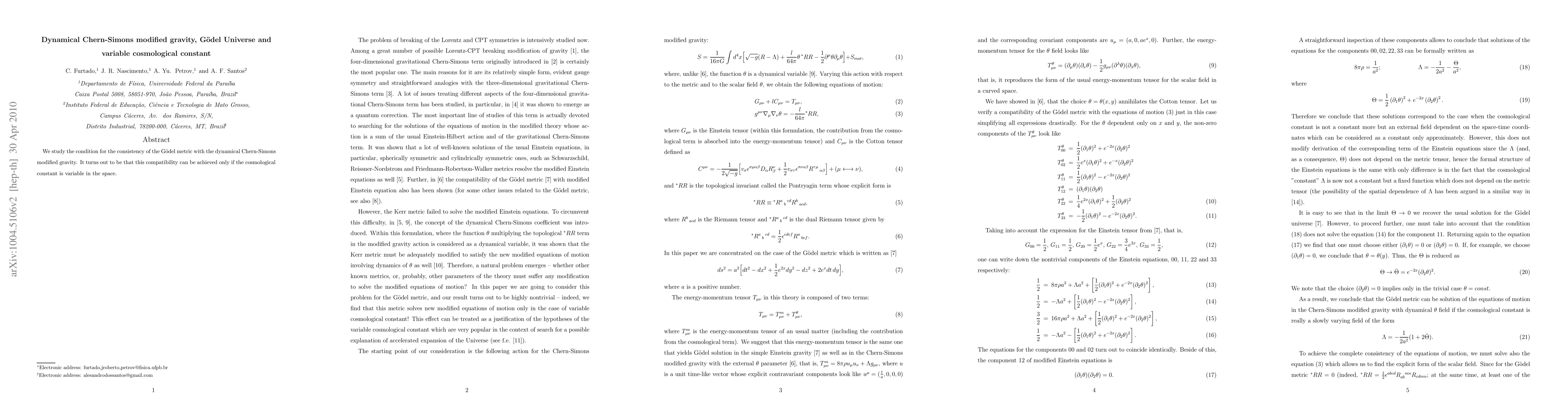 Summary: This paper examines the compatibility of Gödel's metric with dynamical Chern-Simons modified gravity, concluding that the cosmological constant must vary spatially to achieve consistency.