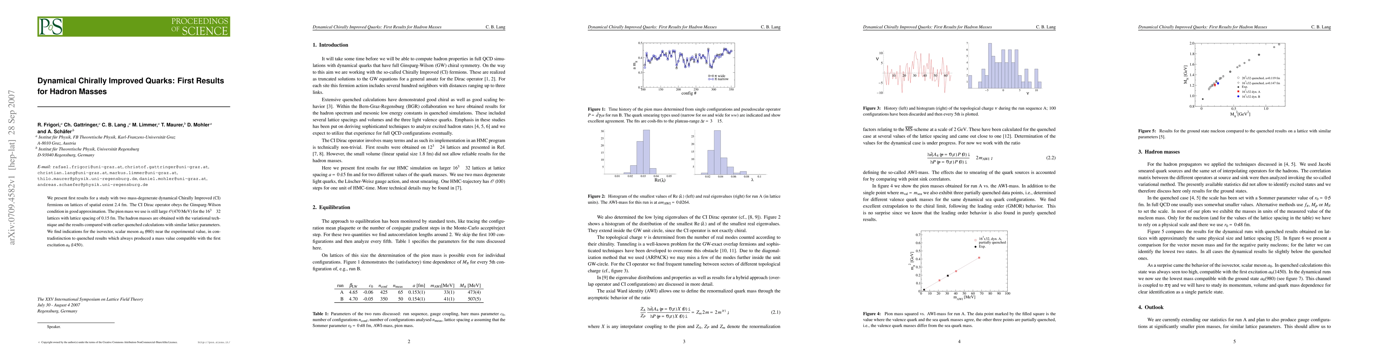 This study employs dynamical Chirally Improved quarks on lattices to investigate hadron masses, finding the a0(980) meson near its experimental value, unlike previous quenched calculations which favored a0(1450). The CI Dirac operator adheres closely to the Ginsparg-Wilson condition.
