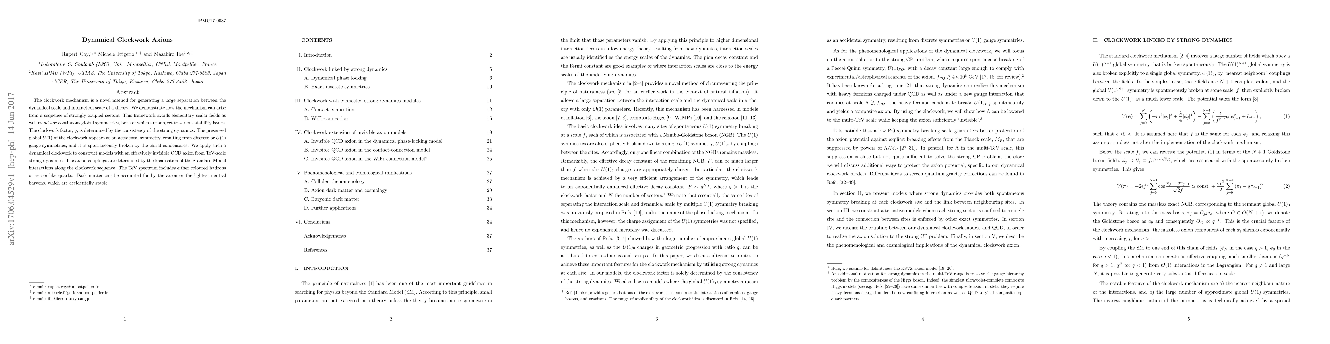 This paper introduces the dynamical clockwork mechanism to generate a large separation between the dynamical and interaction scales, avoiding elementary scalar fields and ad hoc symmetries. It constructs models with an effectively invisible QCD axion from TeV-scale strong dynamics, where axion couplings are determined by the localization of Standard Model interactions.