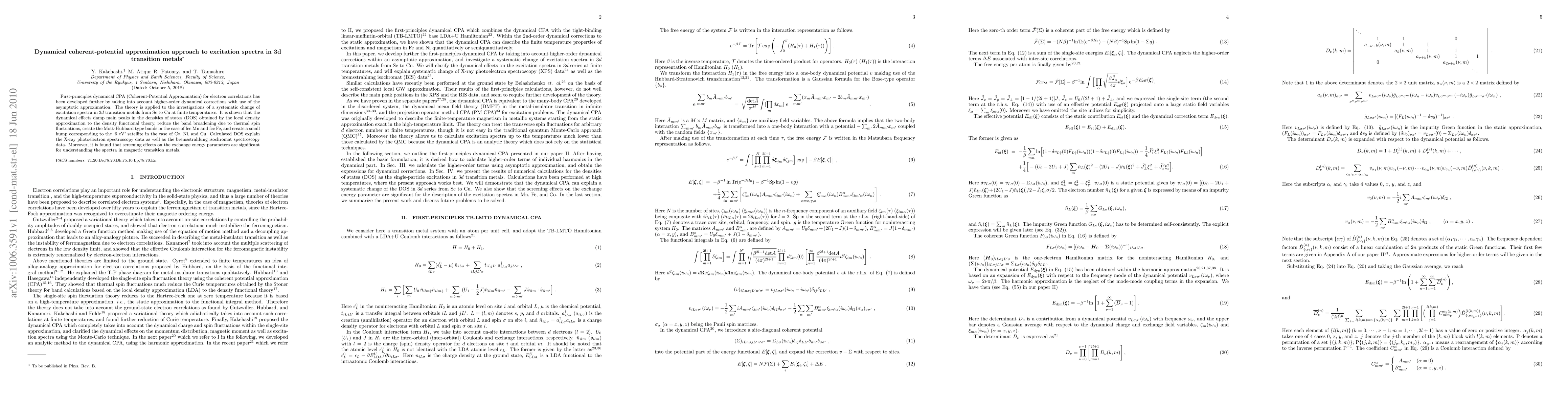 First-principles dynamical CPA (Coherent-Potential Approximation) for electron correlations has been developed further by taking into account higher-order dynamical corrections with use of the asymptotic approximation. The theory is applied to the investigations of a systematic change of excitation spectra in $3d$ transition metals from Sc to Cu at finite temperatures. It is shown that the dynamical effects damp main peaks in the densities of states (DOS) obtained by the local density approximation to the density functional theory, reduce the band broadening due to thermal spin fluctuations, create the Mott-Hubbard type bands in the case of fcc Mn and fcc Fe, and create a small hump corresponding to the `6 eV' satellite in the case of Co, Ni, and Cu. Calculated DOS explain the X-ray photoelectron spectroscopy data as well as the bremsstrahlung isochromat spectroscopy data. Moreover, it is found that screening effects on the exchange energy parameters are significant for understanding the spectra in magnetic transition metals.