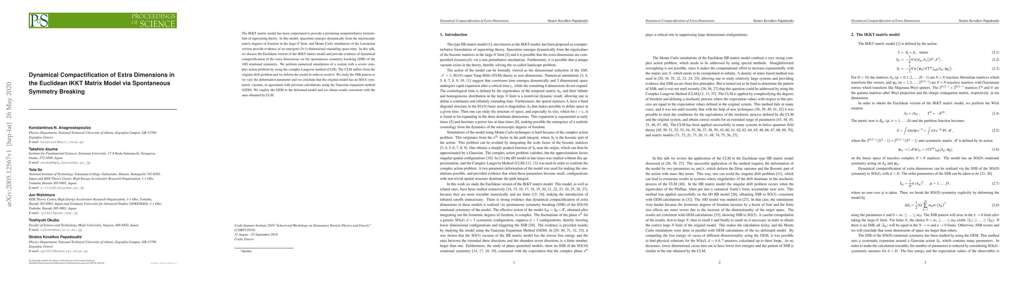 This paper explores the Euclidean IKKT matrix model, demonstrating dynamical compactification of extra dimensions through spontaneous symmetry breaking of 10D rotational symmetry. Numerical simulations using the complex Langevin method reveal an SO(3) symmetric vacuum, corroborated by Gaussian expansion method results.