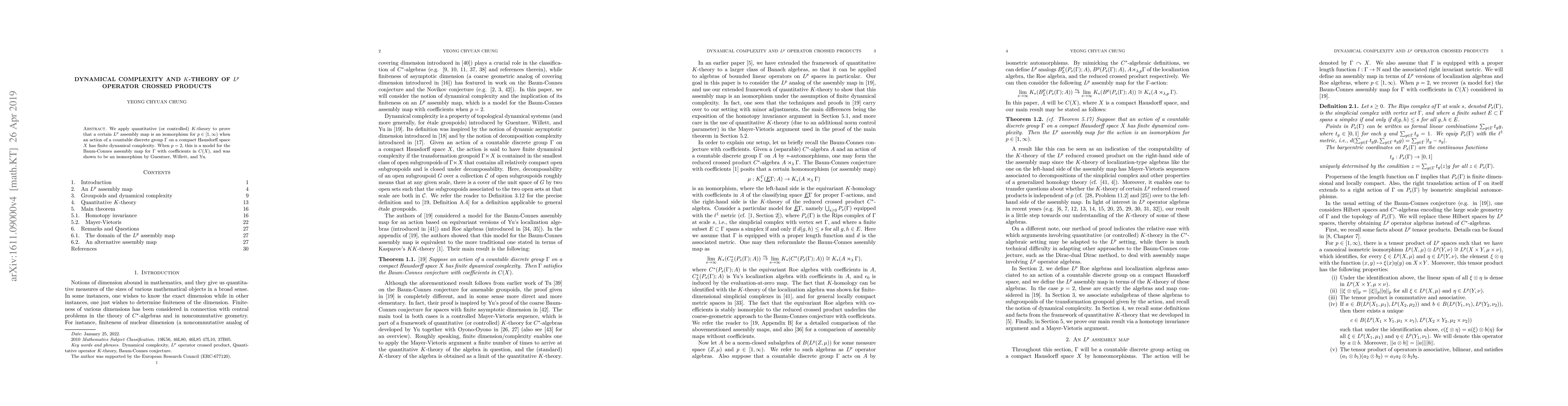 We apply quantitative (or controlled) $K$-theory to prove that a certain $L^p$ assembly map is an isomorphism for $p\in[1,\infty)$ when an action of a countable discrete group $\Gamma$ on a compact Hausdorff space $X$ has finite dynamical complexity. When $p=2$, this is a model for the Baum-Connes assembly map for $\Gamma$ with coefficients in $C(X)$, and was shown to be an isomorphism by Guentner, Willett, and Yu.