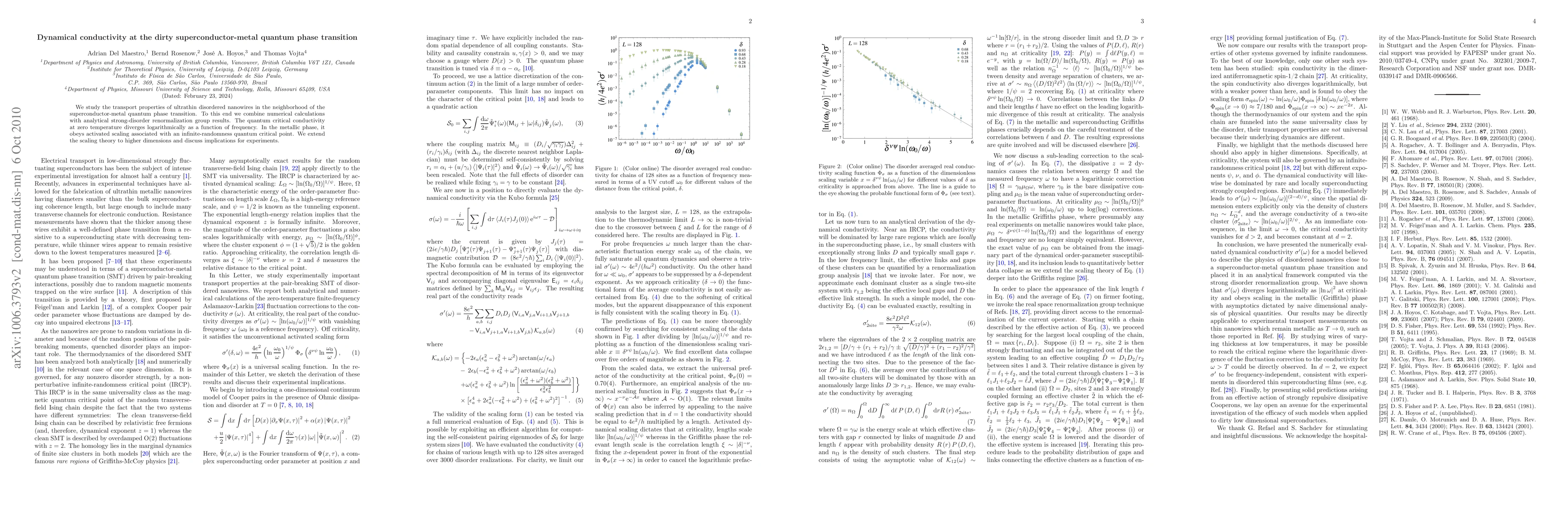 This paper investigates the transport properties near the superconductor-metal quantum phase transition in ultrathin disordered nanowires, revealing that the quantum critical conductivity diverges logarithmically with frequency. In the metallic phase, it follows activated scaling linked to an infinite-randomness quantum critical point, with implications for experimental observations in higher dimensions.