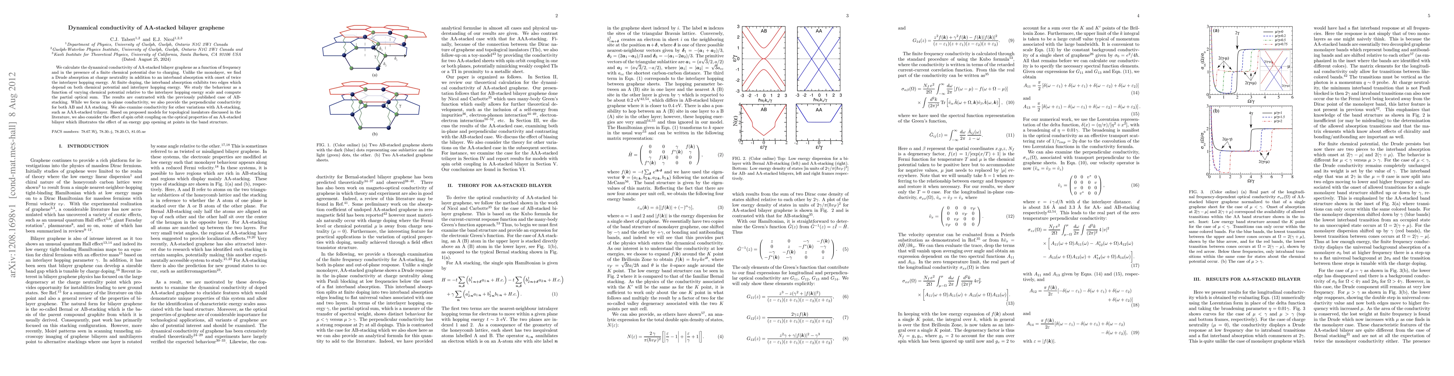 This paper investigates the dynamical conductivity of AA-stacked bilayer graphene, revealing Drude absorption at charge neutrality and interband absorption related to interlayer hopping. It contrasts these findings with AB-stacked bilayer and examines the impact of spin orbit coupling on the optical properties.