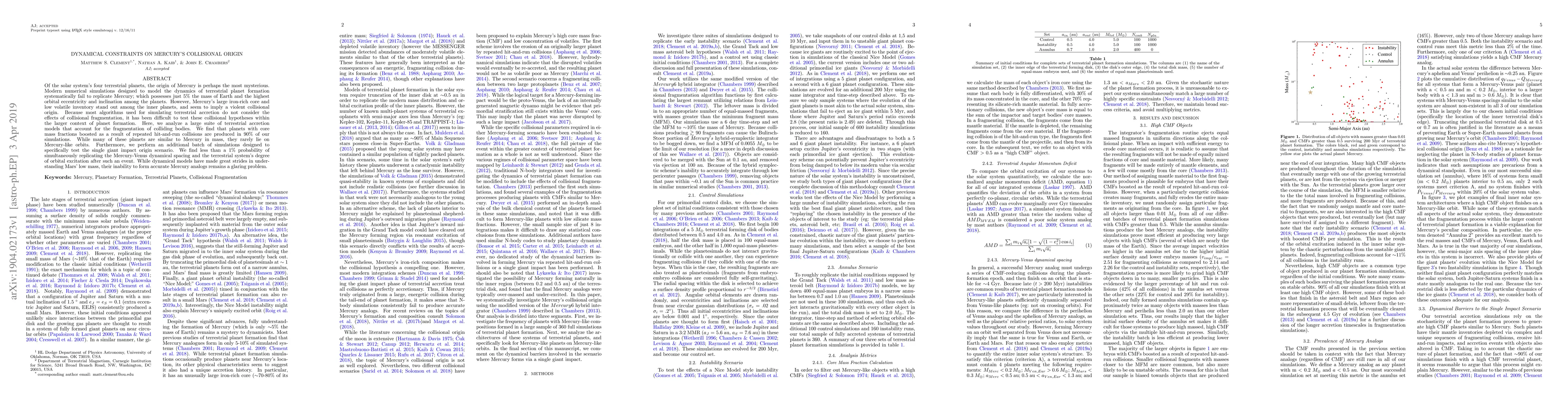 This paper investigates the dynamical constraints on Mercury's collisional origin through numerical simulations of terrestrial planet formation, finding that while collisional models can produce planets with Mercury-like core mass, they rarely match Mercury's unique orbital characteristics. The study concludes that a single giant impact is unlikely to explain Mercury's current orbit and dynamical state.