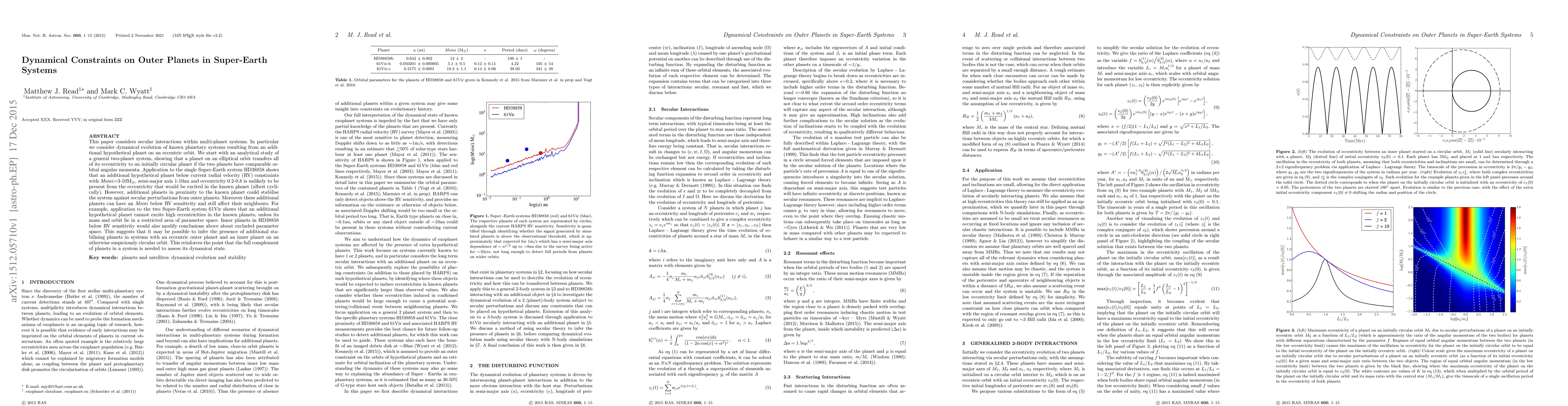 This paper considers secular interactions within multi-planet systems. In particular we consider dynamical evolution of known planetary systems resulting from an additional hypothetical planet on an eccentric orbit. We start with an analytical study of a general two-planet system, showing that a planet on an elliptical orbit transfers all of its eccentricity to an initially circular planet if the two planets have comparable orbital angular momenta. Application to the single Super-Earth system HD38858 shows that an additional hypothetical planet below current radial velocity (RV) constraints with {\textit{Msini}}=3-10M$_\oplus$, semi-major axis 1-10au and eccentricity 0.2-0.8 is unlikely to be present from the eccentricity that would be excited in the known planet (albeit cyclically). However, additional planets in proximity to the known planet could stabilise the system against secular perturbations from outer planets. Moreover these additional planets can have an {\textit{Msini}} below RV sensitivity and still affect their neighbours. For example, application to the two Super-Earth system 61Vir shows that an additional hypothetical planet cannot excite high eccentricities in the known planets, unless its mass and orbit lie in a restricted area of parameter space. Inner planets in HD38858 below RV sensitivity would also modify conclusions above about excluded parameter space. This suggests that it may be possible to infer the presence of additional stabilising planets in systems with an eccentric outer planet and an inner planet on an otherwise suspiciously circular orbit. This reinforces the point that the full complement of planets in a system is needed to assess its dynamical state.