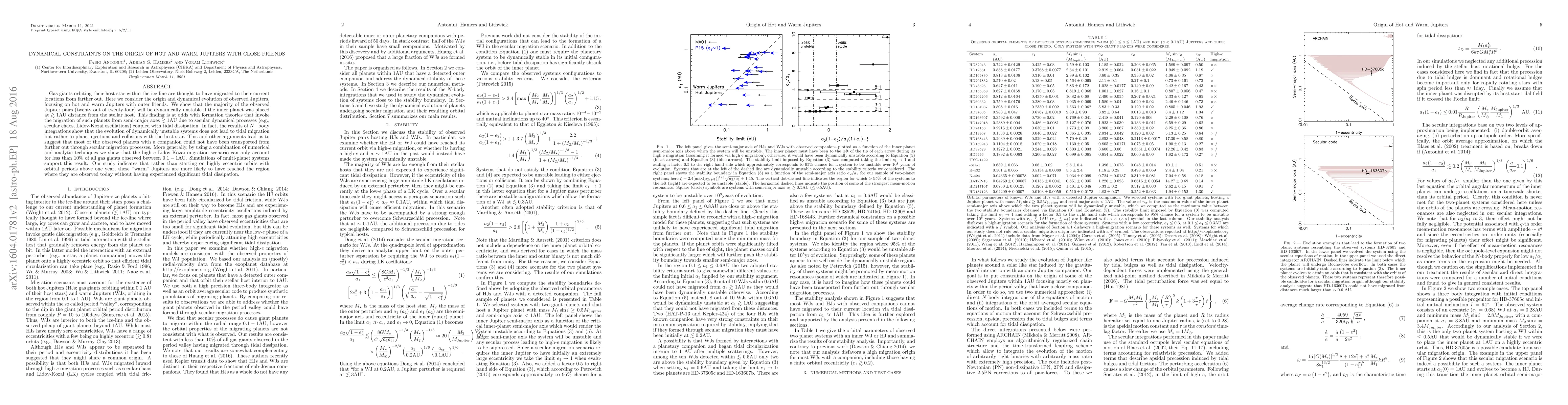 Gas giants orbiting their host star within the ice line are thought to have migrated to their current locations from farther out. Here we consider the origin and dynamical evolution of observed Jupiters, focusing on hot and warm Jupiters with outer friends. We show that the majority of the observed Jupiter pairs (twenty out of twenty-four) will be dynamically unstable if the inner planet was placed at >~1AU distance from the stellar host. This finding is at odds with formation theories that invoke the migration of such planets from semi-major axes >~1AU due to secular dynamical processes (e.g., secular chaos, Lidov-Kozai oscillations) coupled with tidal dissipation. In fact, the results of N-body integrations show that the evolution of dynamically unstable systems does not lead to tidal migration but rather to planet ejections and collisions with the host star. This and other arguments lead us to suggest that most of the observed planets with a companion could not have been transported from further out through secular migration processes. More generally, by using a combination of numerical and analytic techniques we show that the high-e Lidov-Kozai migration scenario can only account for less than 10% of all gas giants observed between 0.1-1 AU. Simulations of multi-planet systems support this result. Our study indicates that rather than starting on highly eccentric orbits with orbital periods above one year, these "warm" Jupiters are more likely to have reached the region where they are observed today without having experienced significant tidal dissipation.