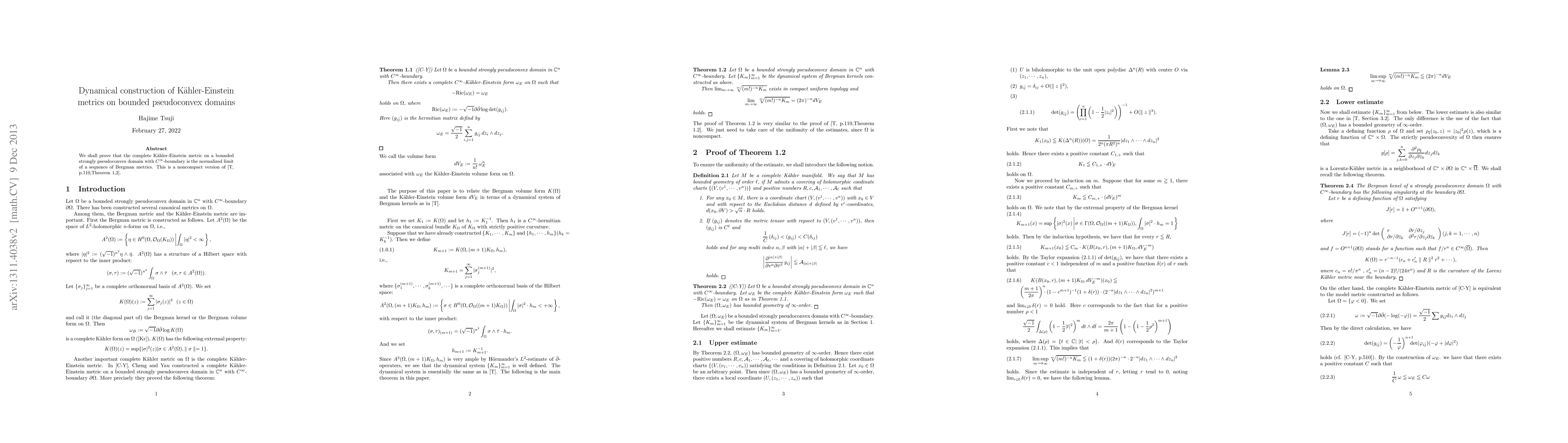 Summary: This paper proves that the Kähler-Einstein volume form on a bounded, strongly pseudoconvex domain with smooth boundary can be constructed as the normalized limit of a sequence of Bergman kernels. The result provides a dynamical method for achieving Kähler-Einstein metrics in such domains.