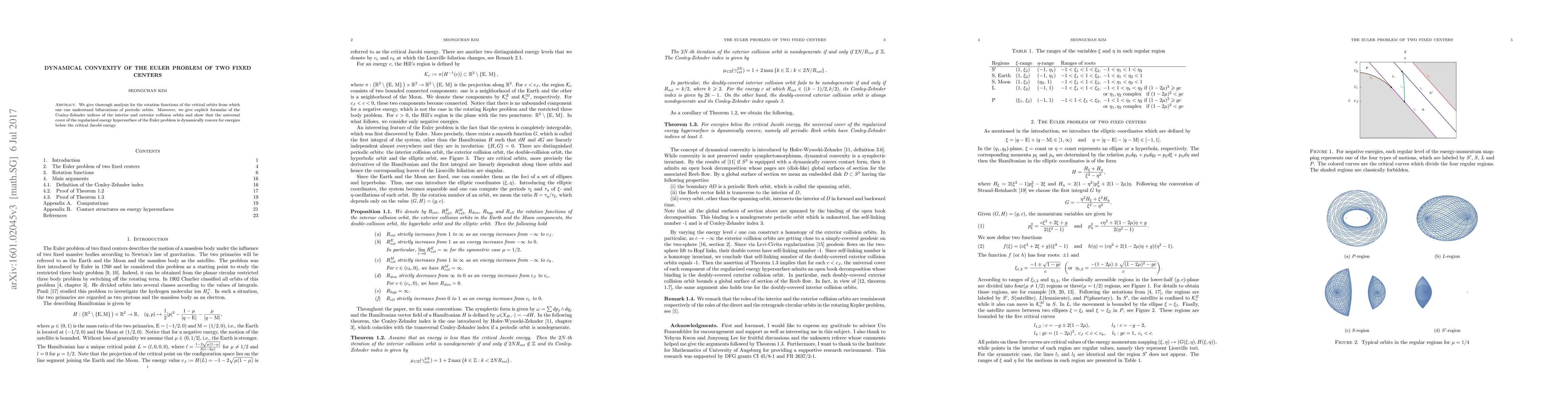 This paper analyzes the rotation functions of critical orbits in the Euler problem of two fixed centers, providing explicit formulas for Conley-Zehnder indices of collision orbits. It demonstrates dynamical convexity of the universal cover of the regularized energy hypersurface for energies below the critical Jacobi energy.