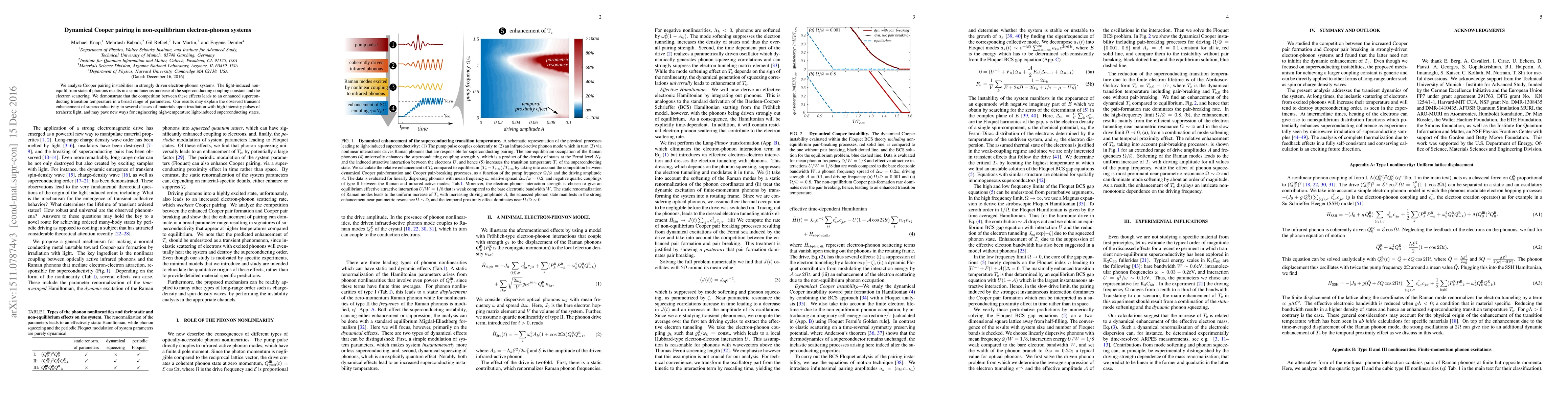 This study investigates Cooper pairing instabilities in electron-phonon systems driven out of equilibrium by intense light, revealing that the induced phonon state boosts both superconducting coupling and electron scattering. The competition between these factors leads to an elevated superconducting transition temperature, potentially explaining transient superconductivity enhancements observed in irradiated materials and suggesting new methods for creating high-temperature light-induced superconducting states.