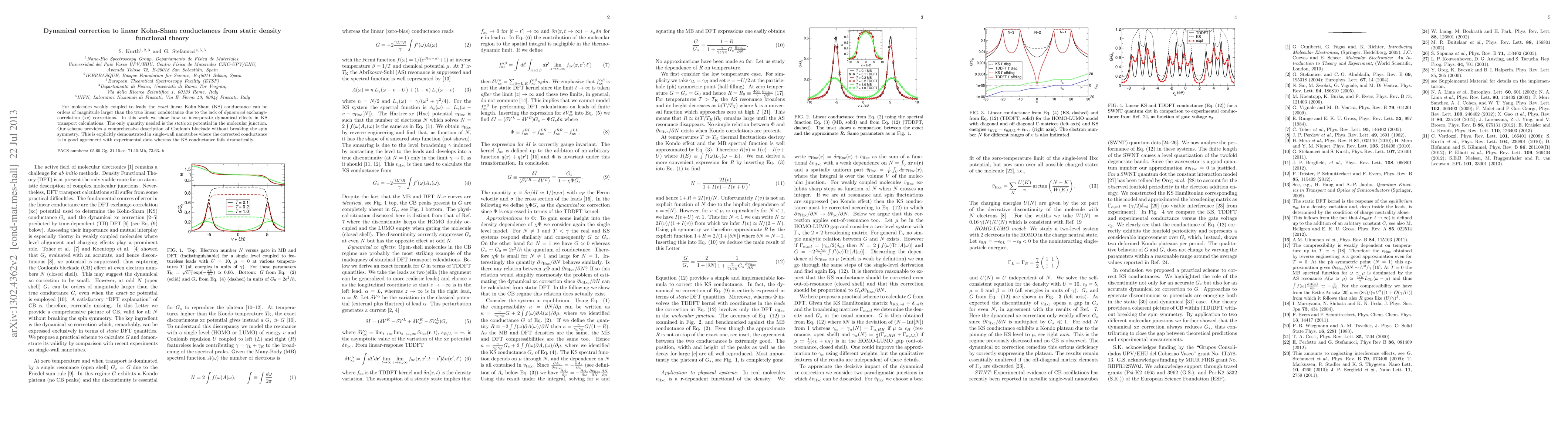 For molecules weakly coupled to leads the exact linear Kohn-Sham (KS) conductance can be orders of magnitude larger than the true linear conductance due to the lack of dynamical exchange-correlation (xc) corrections. In this work we show how to incorporate dynamical effects in KS transport calculations. The only quantity needed is the static xc potential in the molecular junction. Our scheme provides a comprehensive description of Coulomb blockade without breaking the spin symmetry. This is explicitly demonstrated in single-wall nanotubes where the corrected conductance is in good agreement with experimental data whereas the KS conductance fails dramatically.