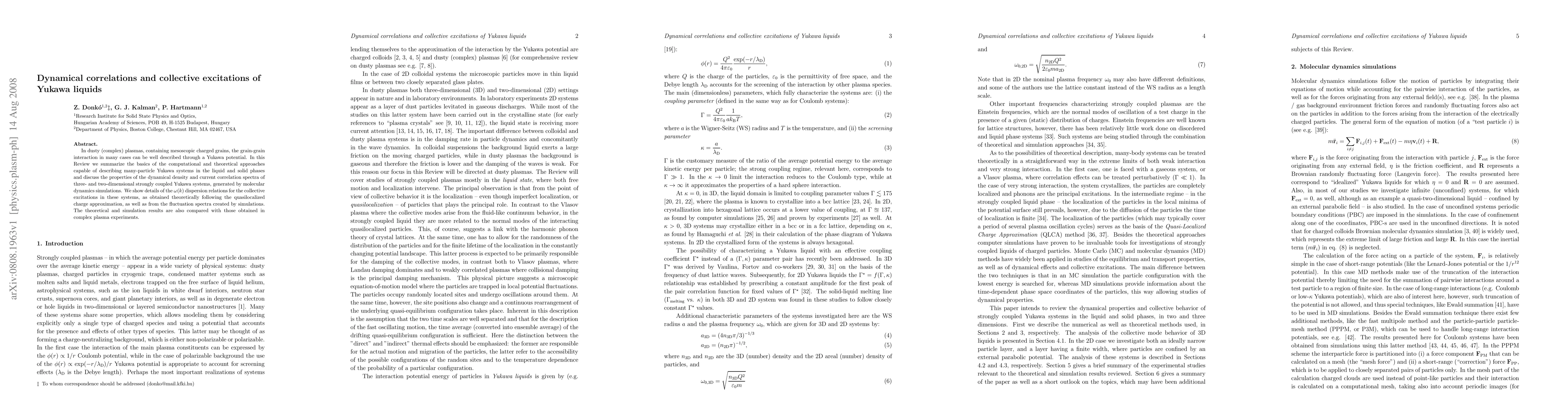 This paper reviews computational and theoretical methods for studying dusty plasmas, focusing on Yukawa liquids' dynamical correlations and collective excitations. It compares molecular dynamics simulation results with theoretical models and experimental data, highlighting $\omega(k)$ dispersion relations for collective excitations.