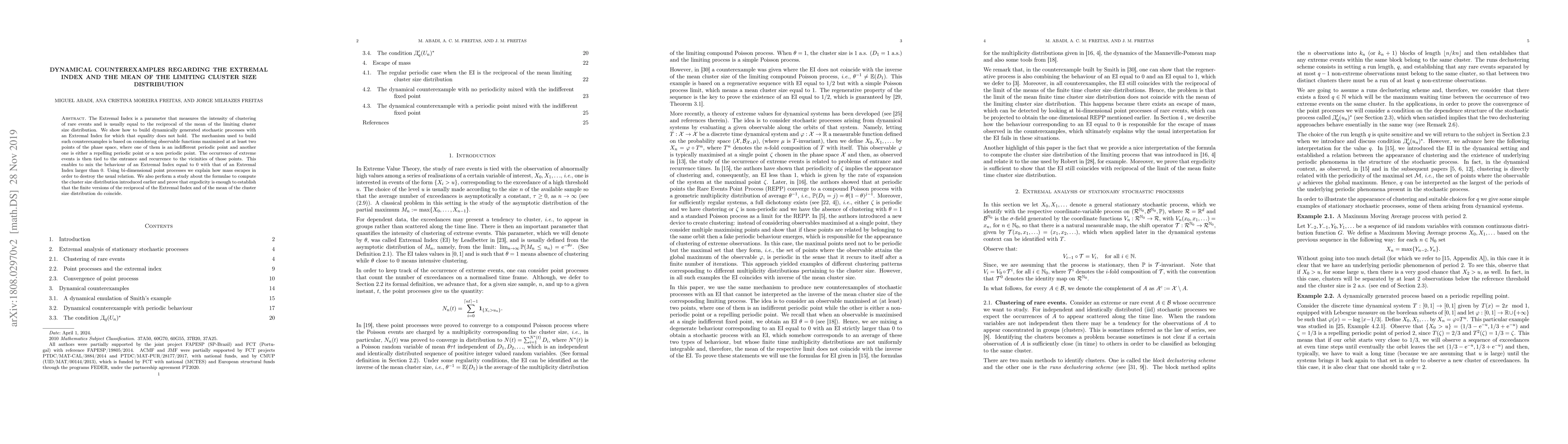 The Extremal Index is a parameter that measures the intensity of clustering of rare events and is usually equal to the reciprocal of the mean of the limiting cluster size distribution. We show how to build dynamically generated stochastic processes with an Extremal Index for which that equality does not hold. The mechanism used to build such counterexamples is based on considering observable functions maximised at at least two points of the phase space, where one of them is an indifferent periodic point and another one is either a repelling periodic point or a non periodic point. The occurrence of extreme events is then tied to the entrance and recurrence to the vicinities of those points. This enables to mix the behaviour of an Extremal Index equal to $0$ with that of an Extremal Index larger than $0$. Using bi-dimensional point processes we explain how mass escapes in order to destroy the usual relation. We also perform a study about the formulae to compute the limiting cluster size distribution introduced in \cite{FFT13,AFV15} and prove that ergodicity is enough to establish that the reciprocal of the Extremal Index is equal to the limit of the mean of the finite time cluster size distribution, which, in the case of the counterexamples given, does not coincide with the mean of the limit of the cluster size distribution.