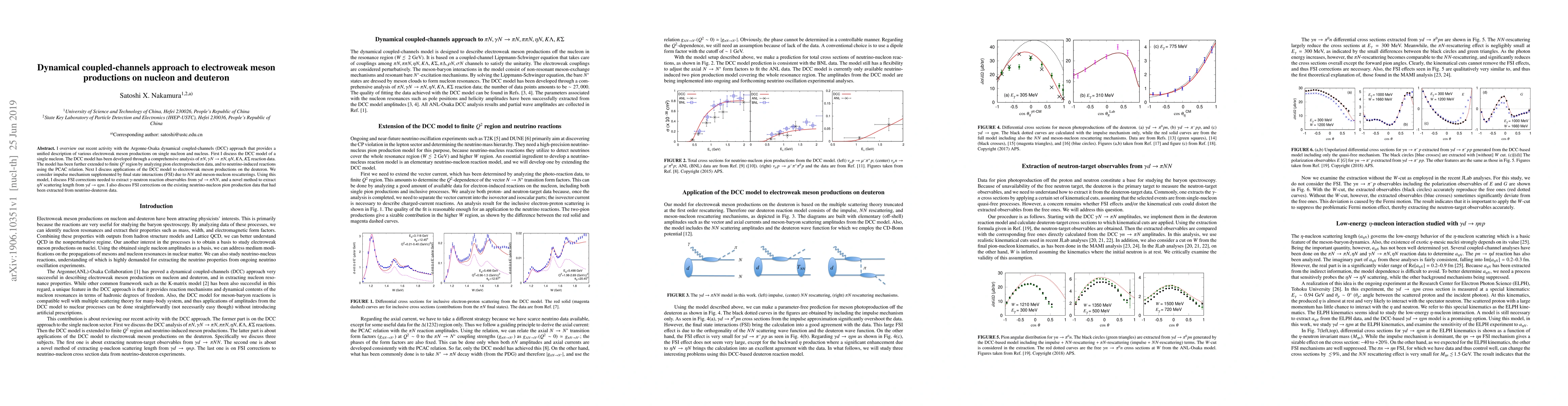 I overview our recent activity with the Argonne-Osaka dynamical coupled-channels (DCC) approach that provides a unified description of various electroweak meson productions on single nucleon and nucleus. First I discuss the DCC model of a single nucleon. The DCC model has been developed through a comprehensive analysis of $\pi N, \gamma N\to \pi N, \eta N, K\Lambda, K\Sigma$ reaction data. The model has been further extended to finite $Q^2$ region by analyzing pion electroproduction data, and to neutrino-induced reactions using the PCAC relation. Next I discuss applications of the DCC model to electroweak meson productions on the deuteron. We consider impulse mechanism supplemented by final state interactions (FSI) due to $NN$ and meson-nucleon rescatterings. Using this model, I discuss FSI corrections needed to extract $\gamma$-neutron reaction observables from $\gamma d\to \pi NN$, and a novel method to extract $\eta N$ scattering length from $\gamma d\to \eta pn$. I also discuss FSI corrections on the existing neutrino-nucleon pion production data that had been extracted from neutrino-deuteron data.
