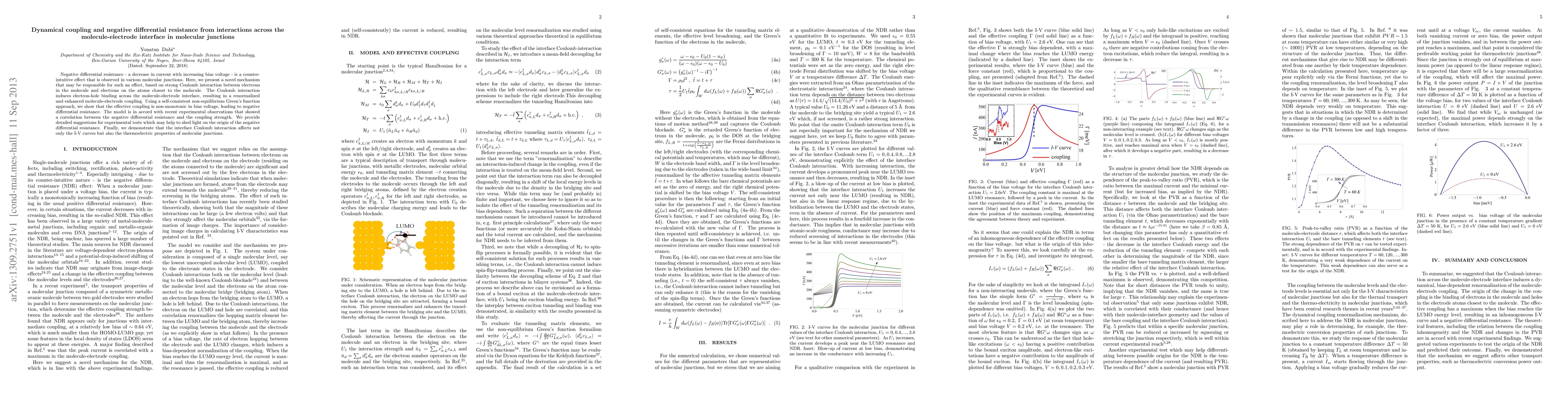 This paper proposes a mechanism for negative differential resistance in molecular junctions based on Coulomb interactions across the molecule-electrode interface, showing that enhanced coupling leads to non-monotonic voltage dependence and thermoelectric effects. Experimental suggestions are provided to validate the proposed model.