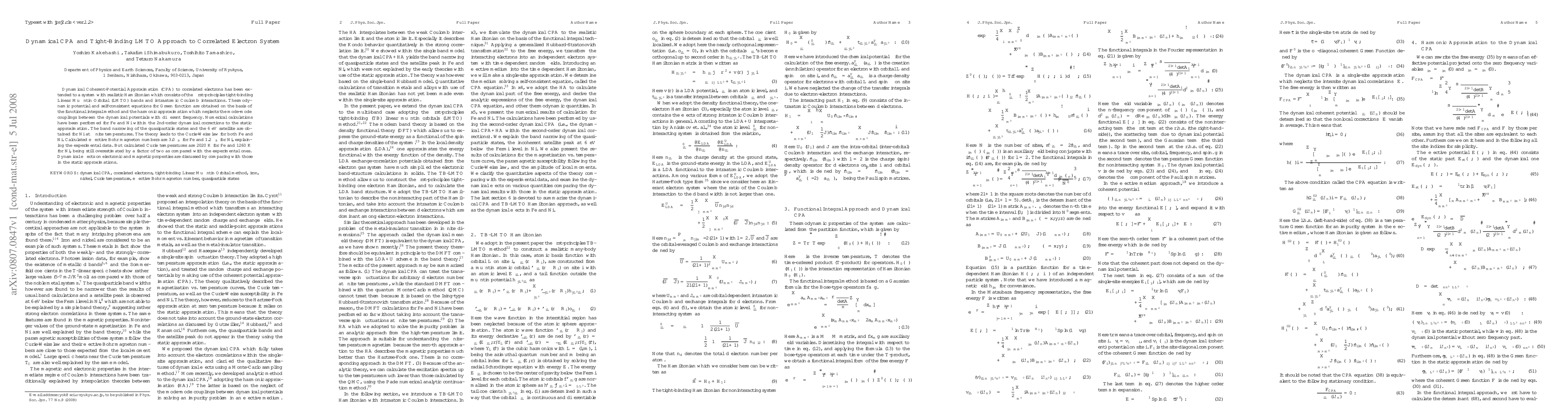 This paper extends the Dynamical Coherent-Potential Approximation (CPA) to correlated electron systems using a tight-binding Linear Muffintin Orbital (LMTO) approach, obtaining thermodynamic potentials and self-consistent Green functions. Calculations for Fe and Ni show band narrowing and a 6 eV satellite, matching experimental effective Bohr magneton numbers but overestimating Curie temperatures by a factor of two.