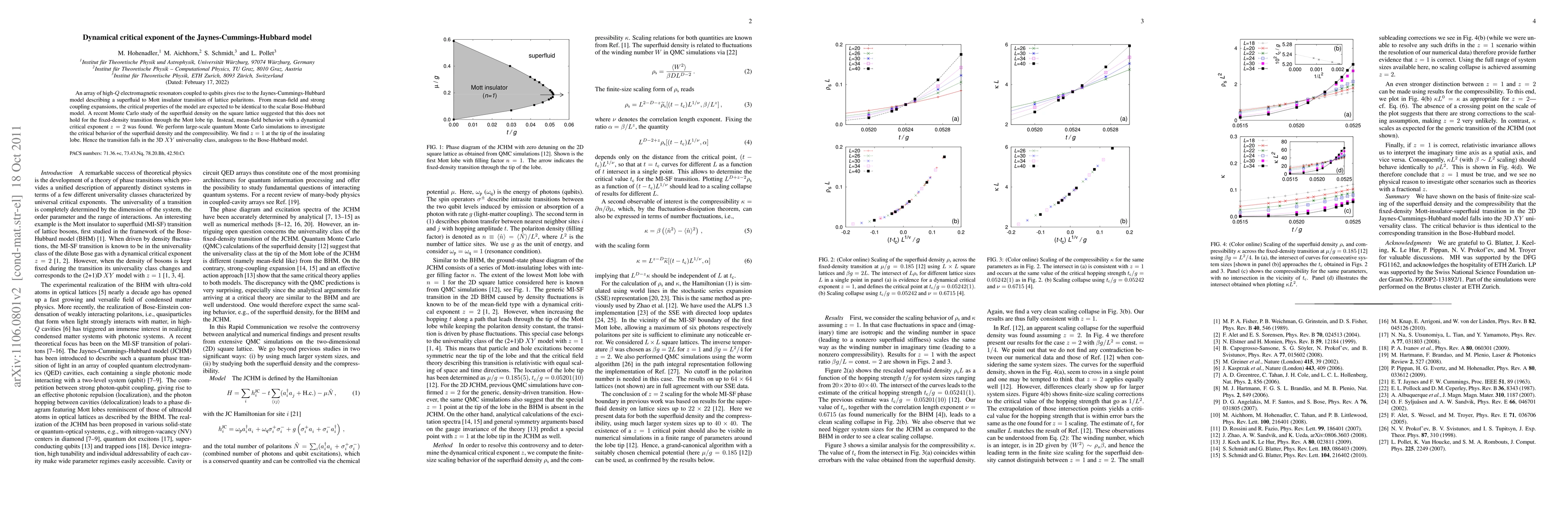 This paper investigates the dynamical critical exponent of the Jaynes-Cummings-Hubbard model, which describes a superfluid to Mott insulator transition in lattice polaritons. Large-scale quantum Monte Carlo simulations reveal a dynamical critical exponent z=1 at the insulating lobe tip, indicating a transition belonging to the 3D XY universality class, contrary to mean-field predictions.