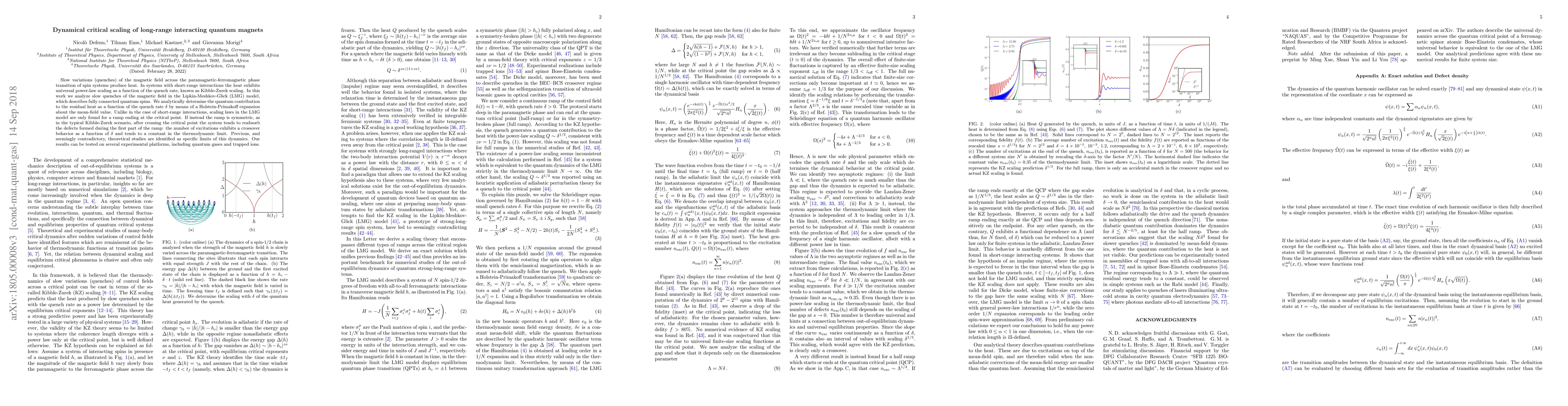 Slow variations (quenches) of the magnetic field across the paramagnetic-ferromagnetic phase transition of spin systems produce heat. In systems with short-range interactions the heat exhibits universal power-law scaling as a function of the quench rate, known as Kibble-Zurek scaling. In this work we analyze slow quenches of the magnetic field in the Lipkin-Meshkov-Glick (LMG) model, which describes fully connected quantum spins. We analytically determine the quantum contribution to the residual heat as a function of the quench rate $\delta$ by means of a Holstein-Primakoff expansion about the mean-field value. Unlike in the case of short-range interactions, scaling laws in the LMG model are only found for a ramp ending at the critical point. If instead the ramp is symmetric, as in the typical Kibble-Zurek scenario, after crossing the critical point the system tends to reabsorb the defects formed during the first part of the ramp: the number of excitations exhibits a crossover behavior as a function of $\delta$ and tends to a constant in the thermodynamic limit. Previous, and seemingly contradictory, theoretical studies are identified as specific limits of this dynamics. Our results can be tested on several experimental platforms, including quantum gases and trapped ions.