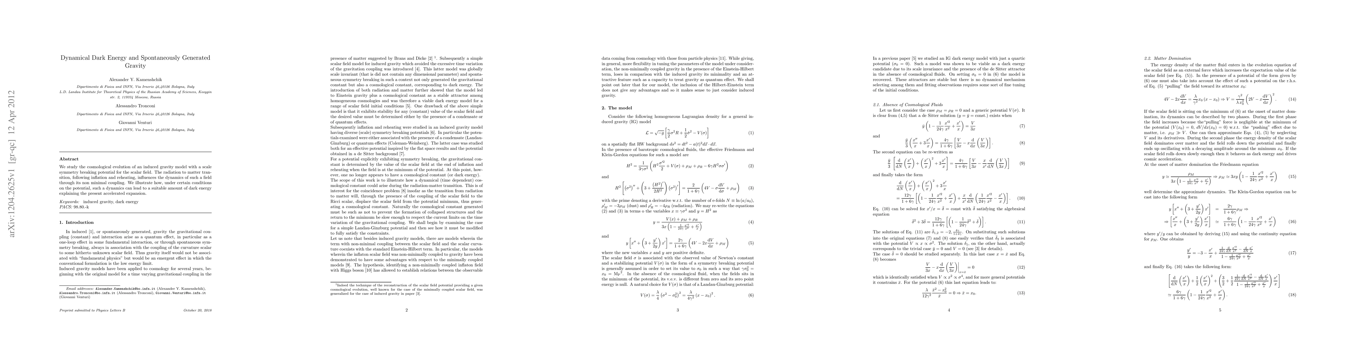 We study the cosmological evolution of an induced gravity model with a scale symmetry breaking potential for the scalar field. The radiation to matter transition, following inflation and reheating, influences the dynamics of such a field through its non minimal coupling. We illustrate how, under certain conditions on the potential, such a dynamics can lead to a suitable amount of dark energy explaining the present accelerated expansion.
