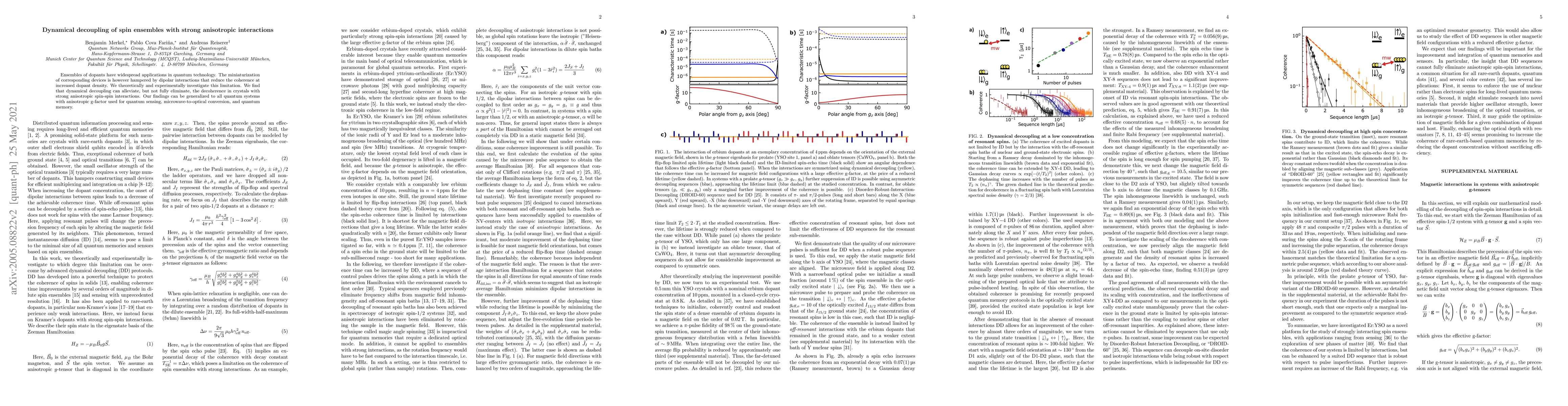 Ensembles of dopants have widespread applications in quantum technology. The miniaturization of corresponding devices is however hampered by dipolar interactions that reduce the coherence at increased dopant density. We theoretically and experimentally investigate this limitation. We find that dynamical decoupling can alleviate, but not fully eliminate, the decoherence in crystals with strong anisotropic spin-spin interactions. Our findings can be generalized to all quantum systems with anisotropic g-factor used for quantum sensing, microwave-to-optical conversion, and quantum memory.