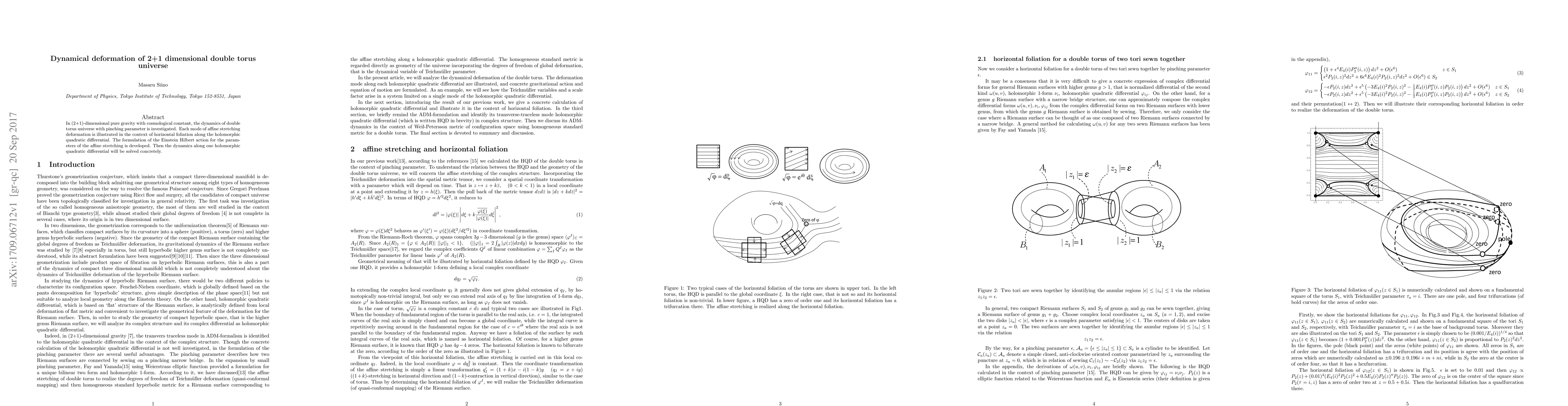 Researchers investigate the dynamics of a 2+1 dimensional double torus universe with pinching parameter, focusing on affine stretching deformation and its implications for gravity in curved spaces.