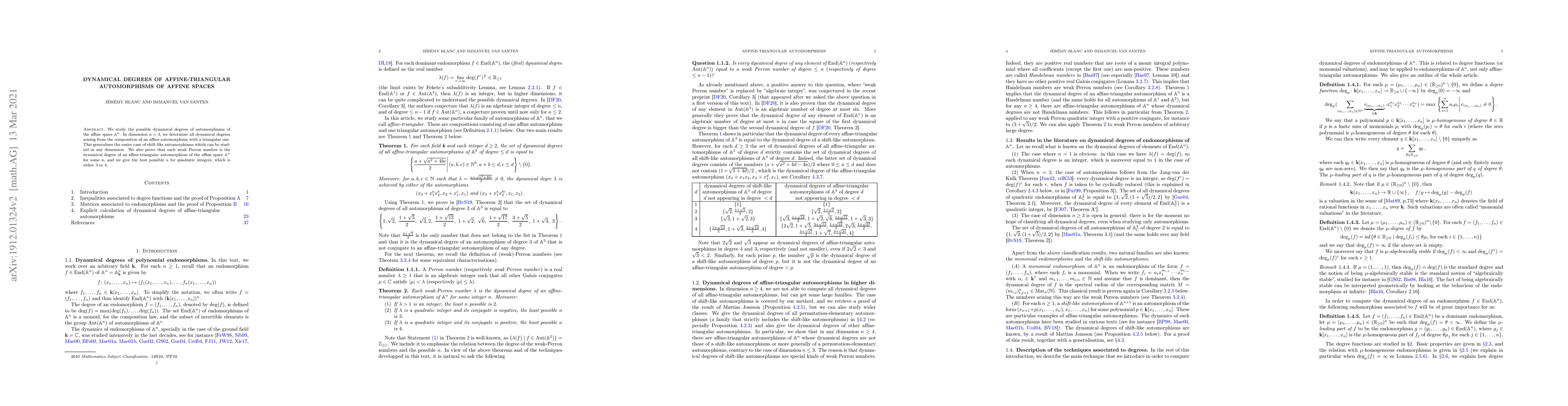 The work is novel in its systematic approach to determining all possible dynamical degrees for affine-triangular compositions in dimension three and in establishing a direct link between weak Perron numbers and dynamical degrees of affine-triangular automorphisms.