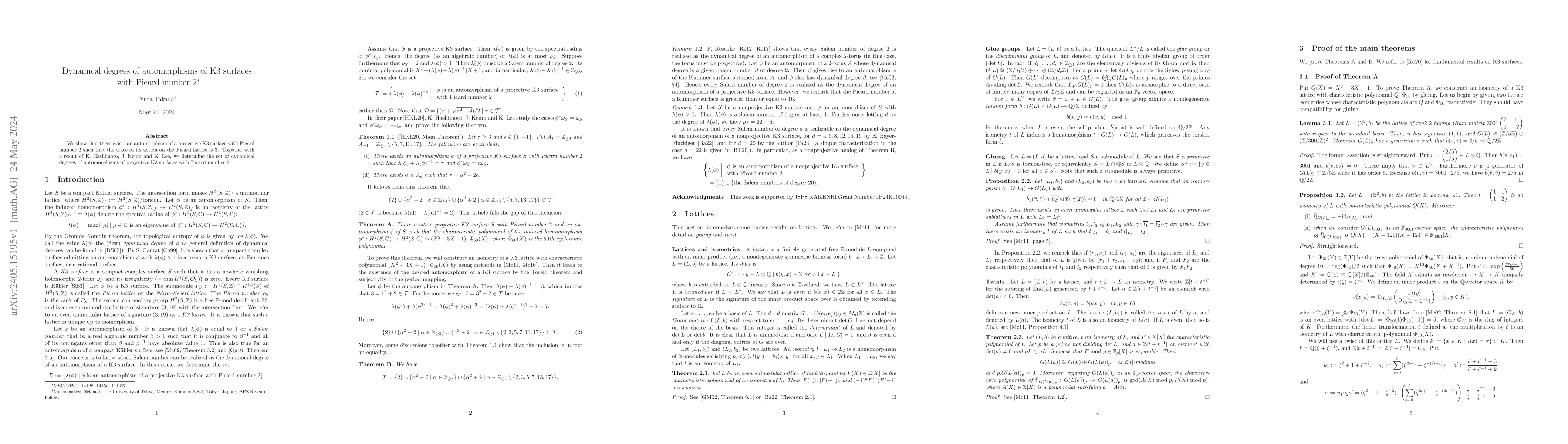 This paper demonstrates the existence of an automorphism on a projective K3 surface with Picard number 2 that has a trace of 3 on its Picard lattice. It also determines the full set of dynamical degrees for such automorphisms, building on prior work by K. Hashimoto, J. Keum, and K. Lee.
