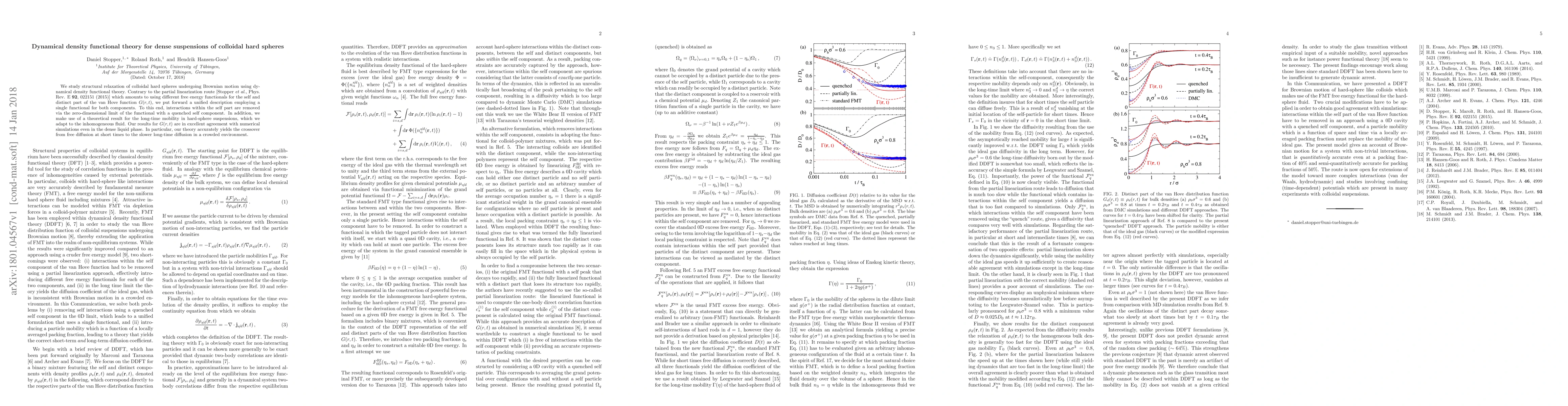 We study structural relaxation of colloidal hard spheres undergoing Brownian motion using dynamical density functional theory. Contrary to the partial linearization route [Stopper {\em et al.}, Phys. Rev. E {\bf 92}, 022151 (2015)] which amounts to using different free energy functionals for the self and distinct part of the van Hove function $G(r,t)$, we put forward a unified description employing a single functional for both components. To this end, interactions within the self part are removed via the zero-dimensional limit of the functional with a quenched self component. In addition, we make use of a theoretical result for the long-time mobility in hard-sphere suspensions, which we adapt to the inhomogeneous fluid. Our results for $G(r,t)$ are in excellent agreement with numerical simulations even in the dense liquid phase. In particular, our theory accurately yields the crossover from free diffusion at short times to the slower long-time diffusion in a crowded environment.