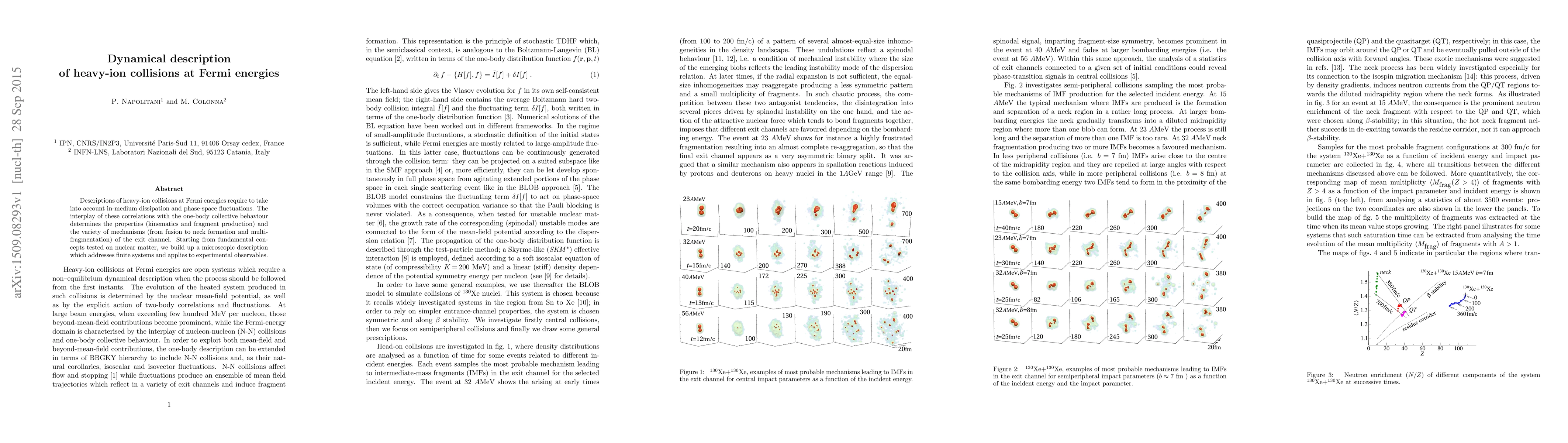 This paper develops a dynamical microscopic model to describe heavy-ion collisions at Fermi energies, incorporating in-medium dissipation and phase-space fluctuations to analyze the resulting kinematic properties, fragment production, and various mechanisms from fusion to multifragmentation. The model is grounded in fundamental nuclear physics concepts and is tailored to match experimental observables.
