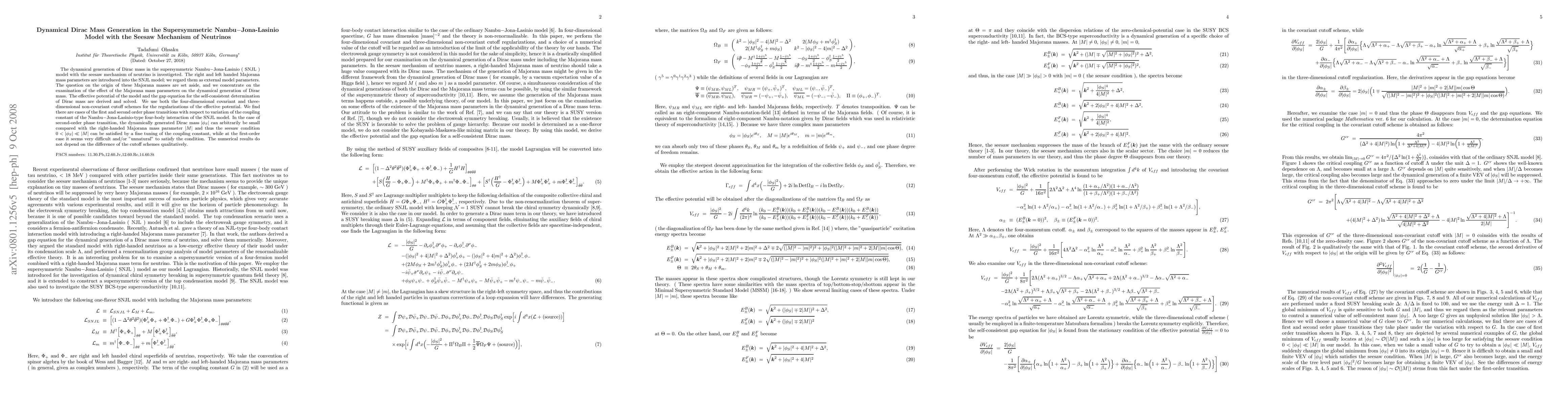 This paper investigates the dynamical generation of Dirac mass in a supersymmetric Nambu-Jona-Lasinio (SNJL) model incorporating the seesaw mechanism for neutrinos. It finds that the Majorana mass parameters influence the generation of Dirac mass, with the potential for a second-order phase transition allowing for a fine-tuned small Dirac mass relative to the Majorana mass, satisfying the seesaw condition.