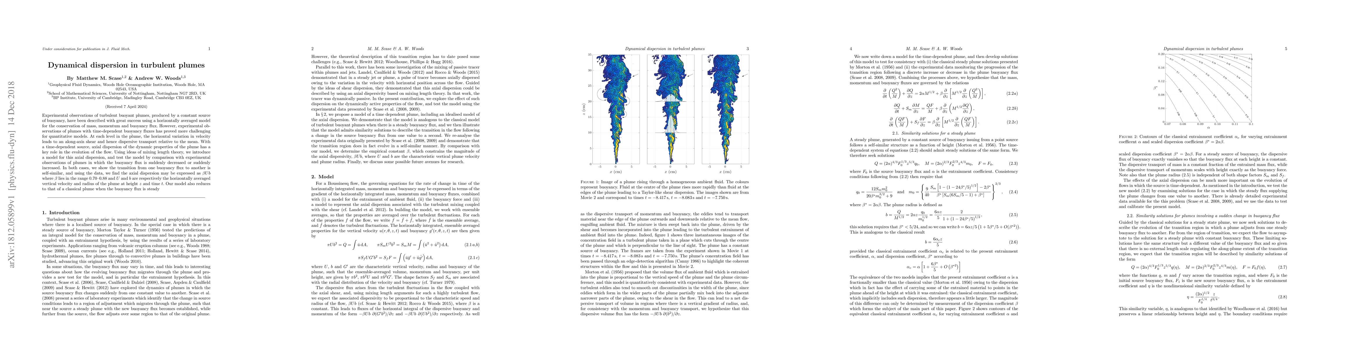 The paper presents a new model for time-dependent turbulent plumes incorporating axial dispersion, validated against experimental data.