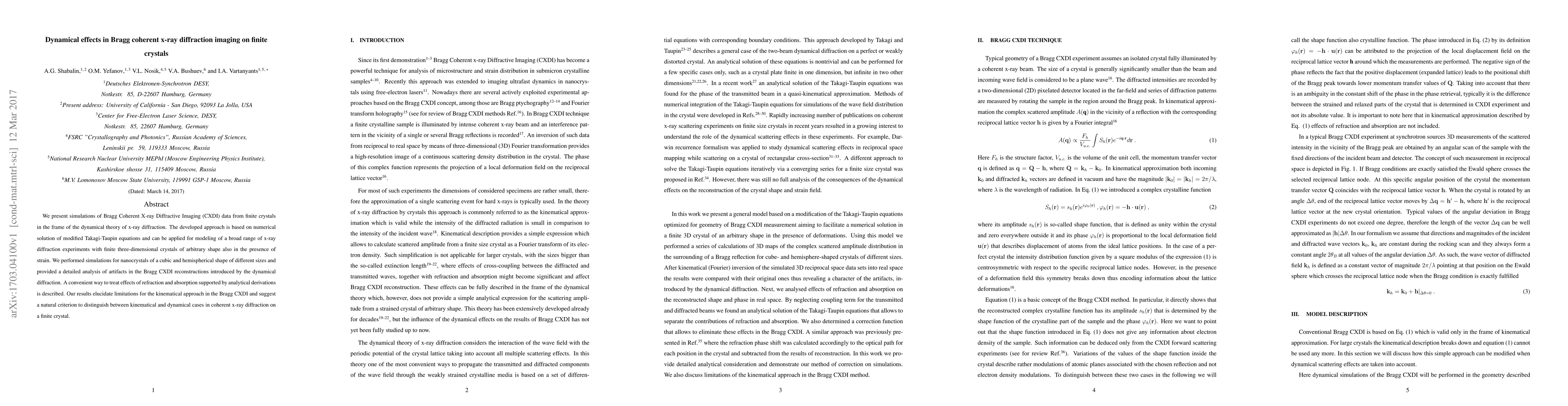This paper simulates Bragg Coherent X-ray Diffractive Imaging (CXDI) data for finite crystals using the dynamical theory of x-ray diffraction. It introduces a numerical solution of modified Takagi-Taupin equations to model diffraction experiments and analyzes artifacts from dynamical diffraction, highlighting limitations of the kinematical approach.