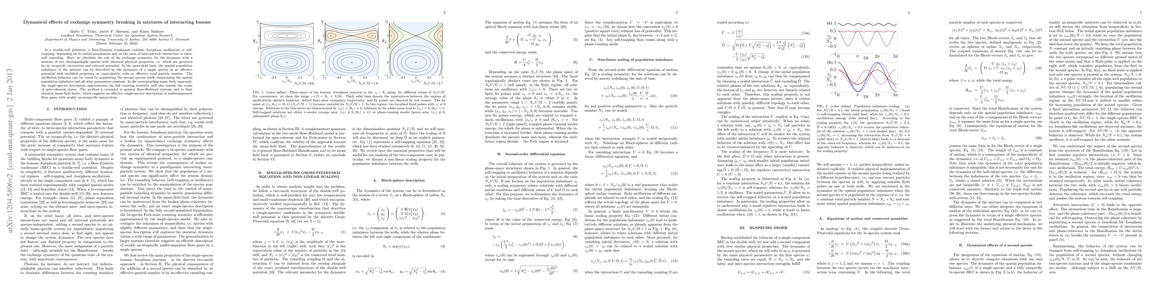 In a double-well potential, a Bose-Einstein condensate exhibits Josephson oscillations or self-trapping, depending on its initial preparation and on the ratio of inter-particle interaction to inter-well tunneling. Here, we elucidate the role of the exchange symmetry for the dynamics with a mixture of two distinguishable species with identical physical properties, i.e. which are governed by an isospecific interaction and external potential. In the mean-field limit, the spatial population imbalance of the mixture can be described by the dynamics of a single species in an effective potential with modified properties or, equivalently, with an effective total particle number. The oscillation behavior can be tuned by populating the second species while maintaining the spatial population imbalance and all other parameters constant. In the corresponding many-body approach, the single-species description approximates the full counting statistics well also outside the realm of spin-coherent states. The method is extended to general Bose-Hubbard systems and to their classical mean-field limits, which suggests an effective single-species description of multicomponent Bose gases with weakly an-isospecific interactions.