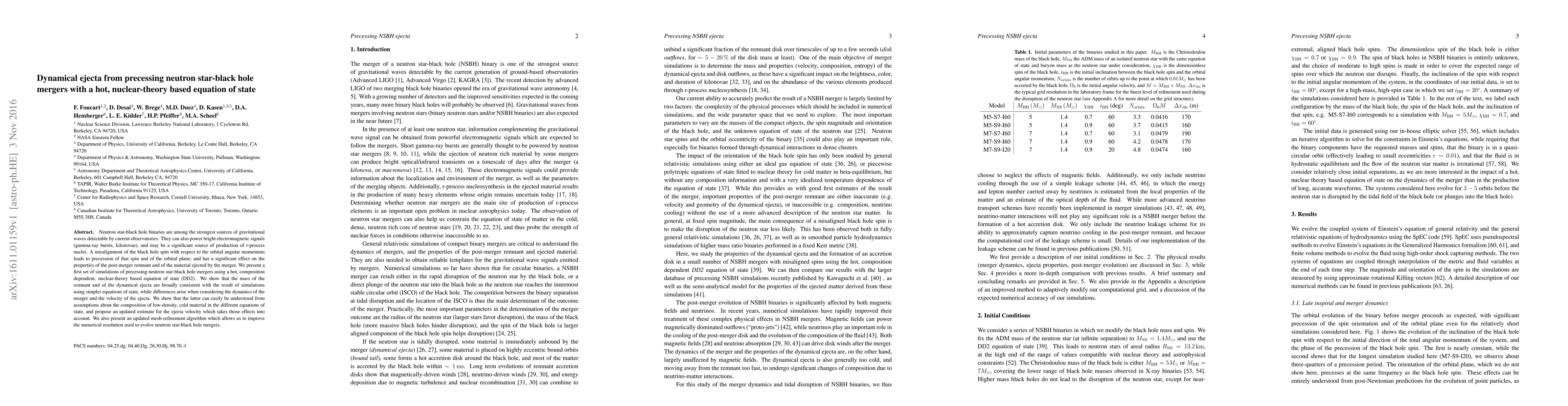 This paper investigates the dynamical ejecta from precessing neutron star-black hole mergers using a hot, nuclear-theory based equation of state (DD2). It finds that the mass of the remnant and ejecta is consistent with simpler models, but highlights differences in ejecta velocity dynamics influenced by composition assumptions.