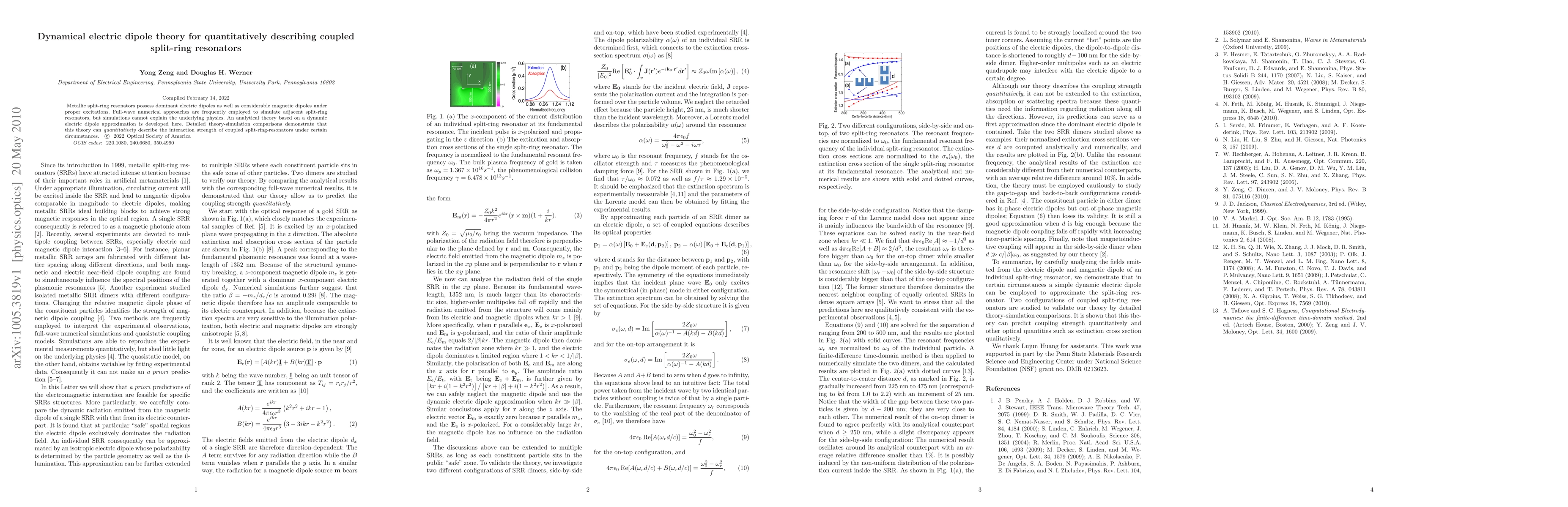 The paper develops an analytical dynamical electric dipole theory to quantitatively describe the interaction between coupled split-ring resonators, showing it matches well with full-wave numerical simulations. This theory provides a clearer understanding of the underlying physics beyond mere computational results.