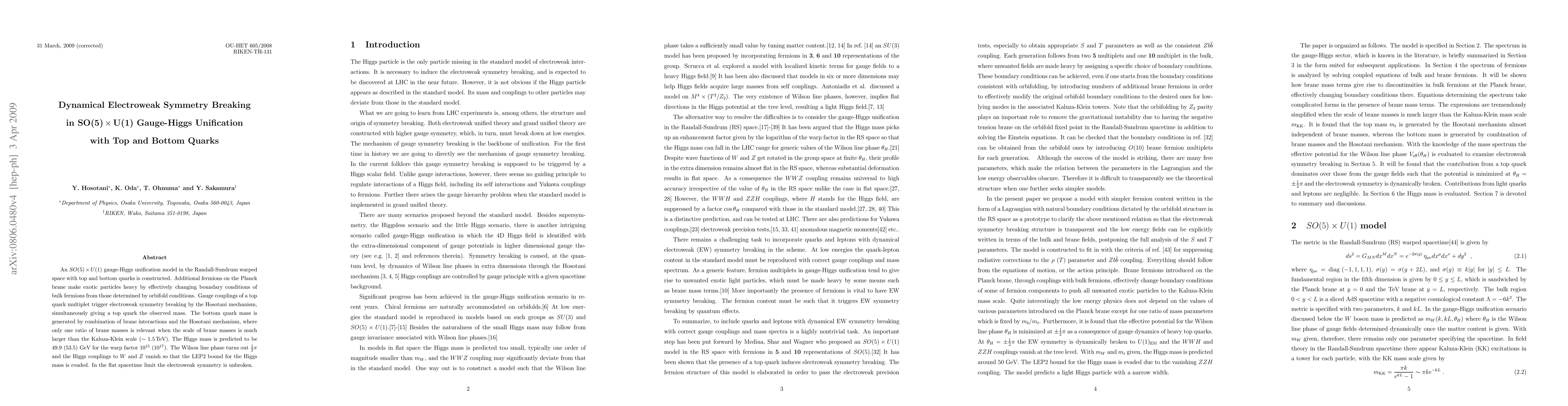 This paper constructs a SO(5)xU(1) gauge-Higgs unification model in a Randall-Sundrum warped space, where the Hosotani mechanism dynamically breaks electroweak symmetry via top quark couplings, generating observed masses for both top and bottom quarks. The Higgs mass is predicted to evade LEP2 bounds.