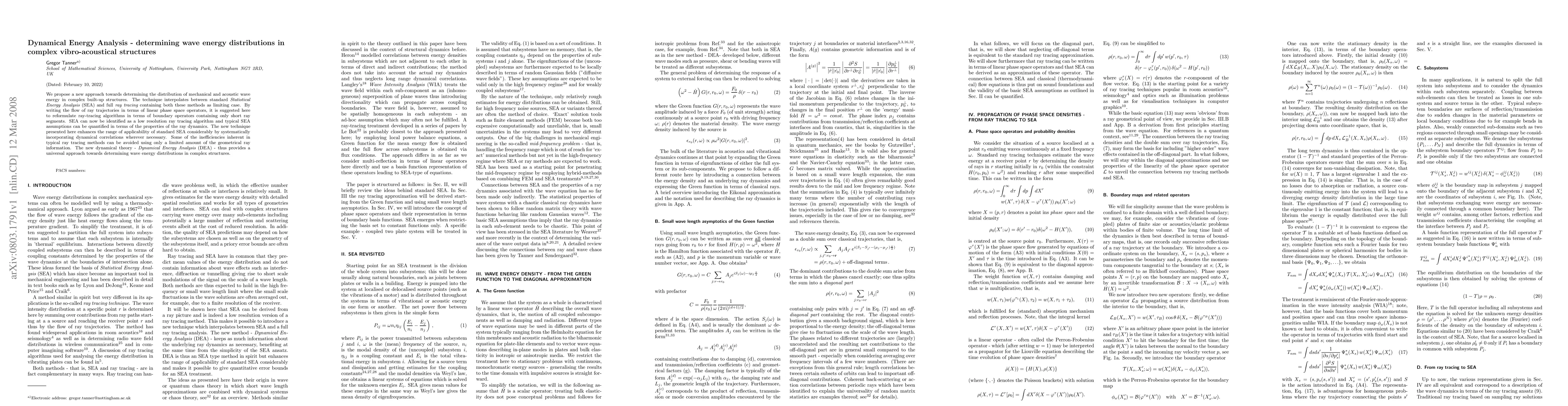 We propose a new approach towards determining the distribution of mechanical and acoustic wave energy in complex built-up structures. The technique interpolates between standard Statistical Energy Analysis (SEA) and full ray tracing containing both these methods as limiting case. By writing the flow of ray trajectories in terms of linear phase space operators, it is suggested here to reformulate ray-tracing algorithms in terms of boundary operators containing only short ray segments. SEA can now be identified as a low resolution ray tracing algorithm and typical SEA assumptions can be quantified in terms of the properties of the ray dynamics. The new technique presented here enhances the range of applicability of standard SEA considerably by systematically incorporating dynamical correlations wherever necessary. Some of the inefficiencies inherent in typical ray tracing methods can be avoided using only a limited amount of the geometrical ray information. The new dynamical theory - Dynamical Energy Analysis (DEA) - thus provides a universal approach towards determining wave energy distributions in complex structures.