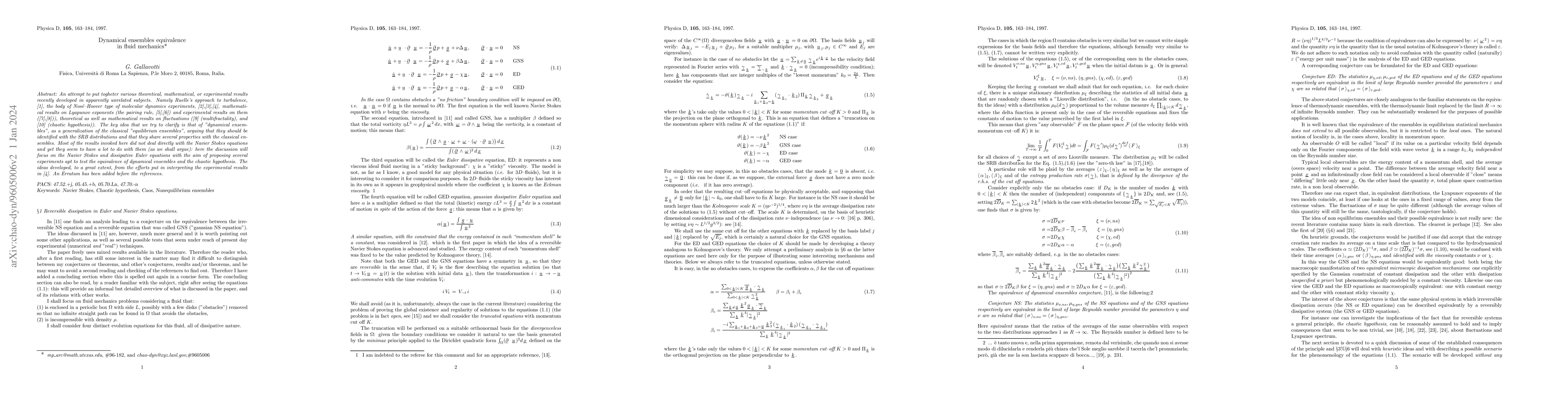 Dissipative Euler and Navier Stokes equations are discussed with the aim of proposing several experiments apt to test the equivalence of dynamical ensembles and the chaotic hypothesis.