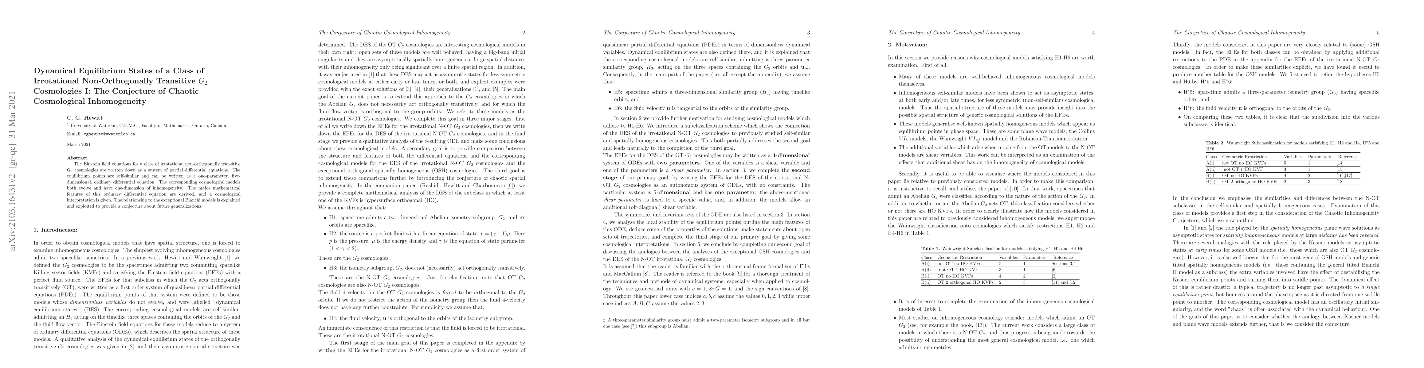 The Einstein field equations for a class of irrotational non-orthogonally transitive $G_{2}$ cosmologies are written down as a system of partial differential equations. The equilibrium points are self-similar and can be written as a one-parameter, five-dimensional, ordinary differential equation. The corresponding cosmological models both evolve and have one-dimension of inhomogeneity. The major mathematical features of this ordinary differential equation are derived, and a cosmological interpretation is given. The relationship to the exceptional Bianchi models is explained and exploited to provide a conjecture about future generalizations.