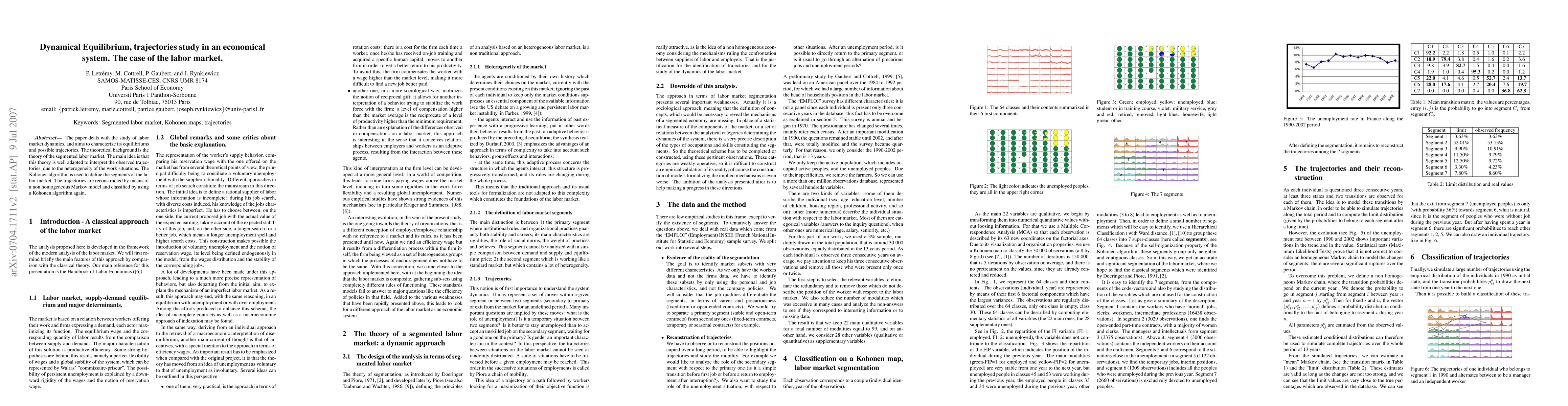 Summary: This paper investigates labor market dynamics using the segmented labor market theory to characterize equilibriums and trajectories. It demonstrates the theory's effectiveness in interpreting diverse work situations and their associated paths.